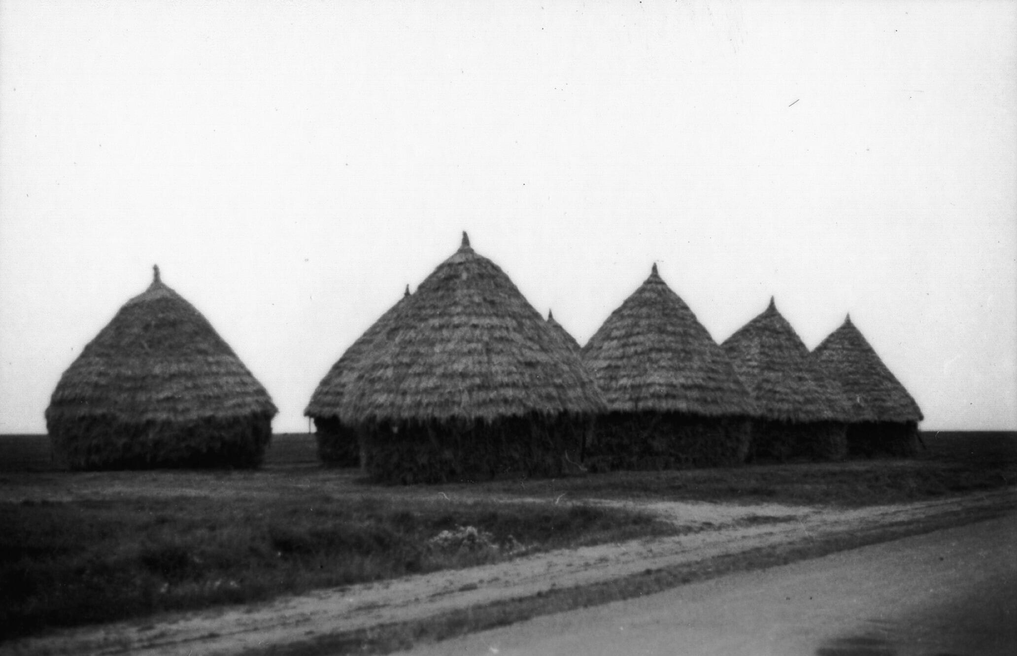 Korenmijten in het Noord-Hollandse Wieringermeer voor de opslag van koren op het platteland.