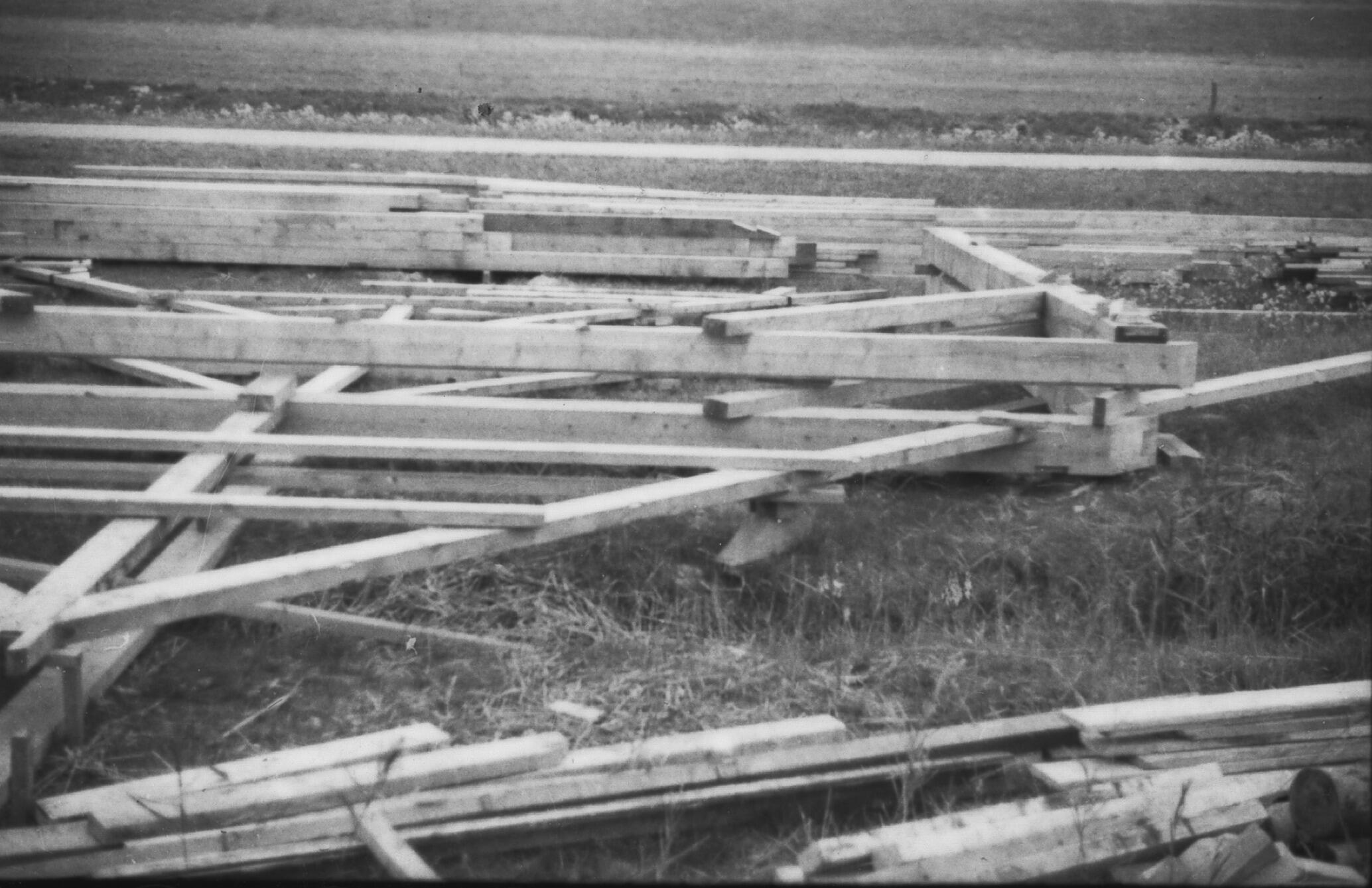 Schuurgebinten van een boerderij, Wieringermeer, 1936 (zwart-wit negatief)