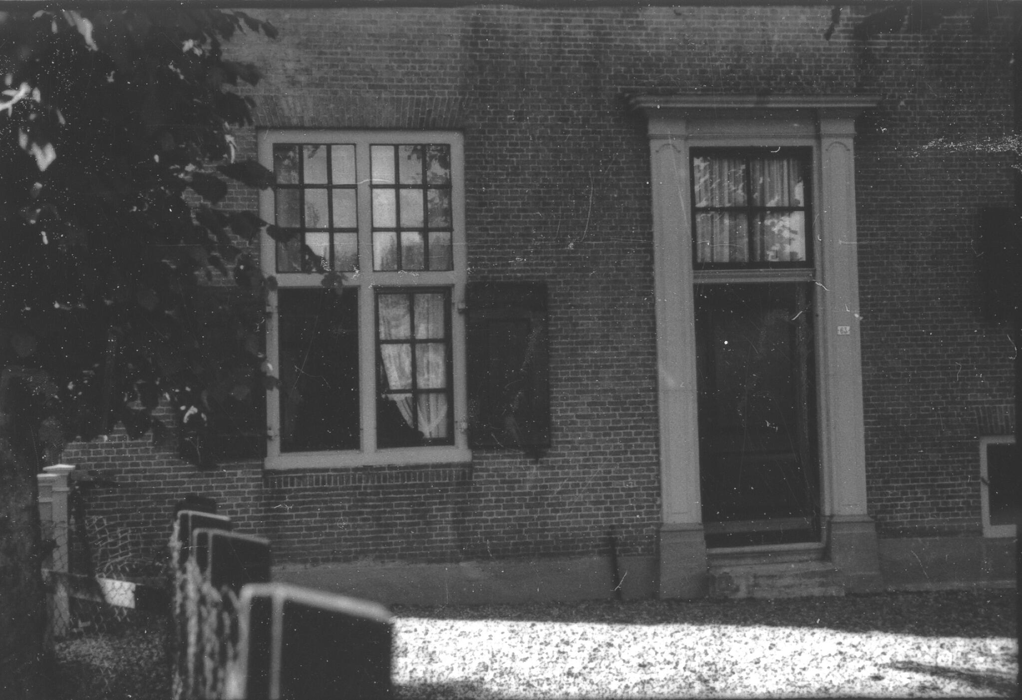 Gedeelte van de voorgevel van een boerderij in Moerkapelle met een raam en de voordeur.