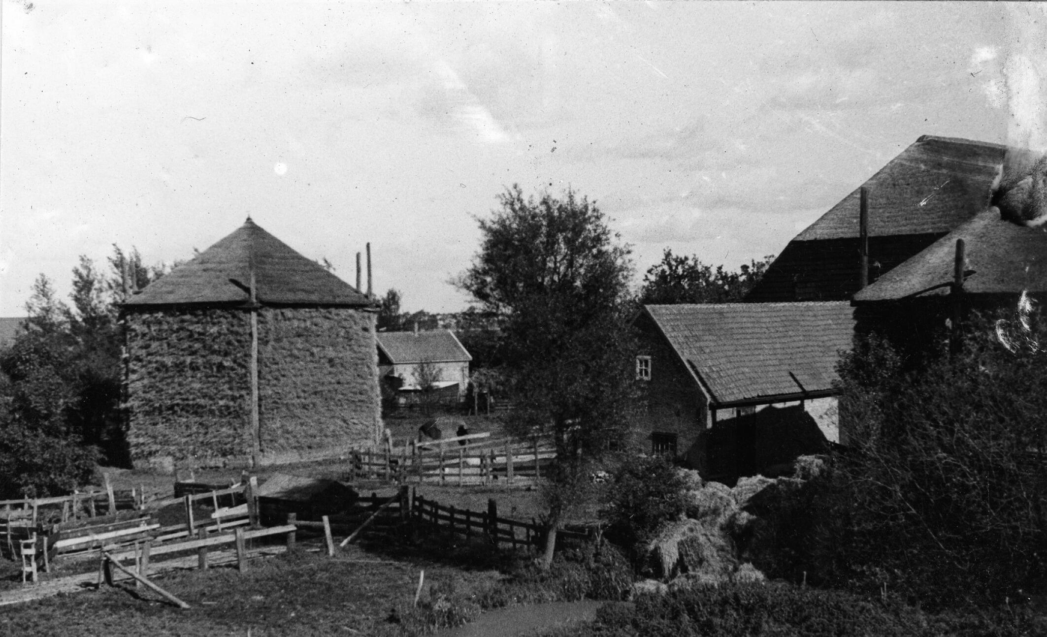Boerderij met hooibergen, Moerkapelle, 1936 (zwart-wit foto)