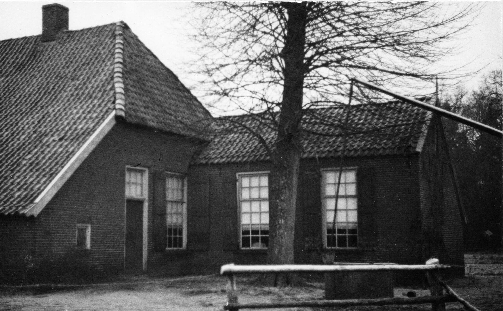 Hallenhuisboerderij in Neede in de Achterhoek, met voor de boerderij een waterput met puthaal en een aanbouw.