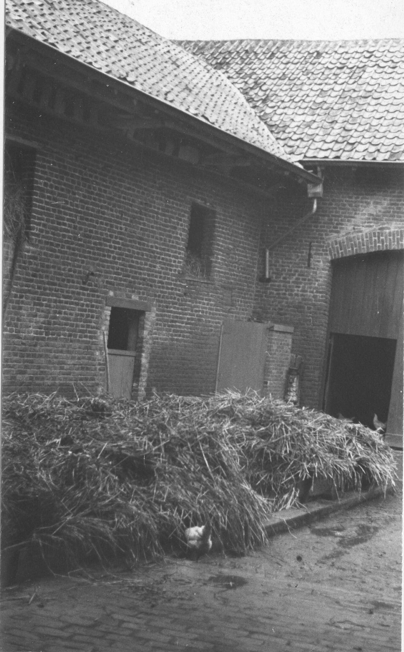 Binnenplaats van een boerderij, Oirsbeek, 1937 (zwart-wit foto)