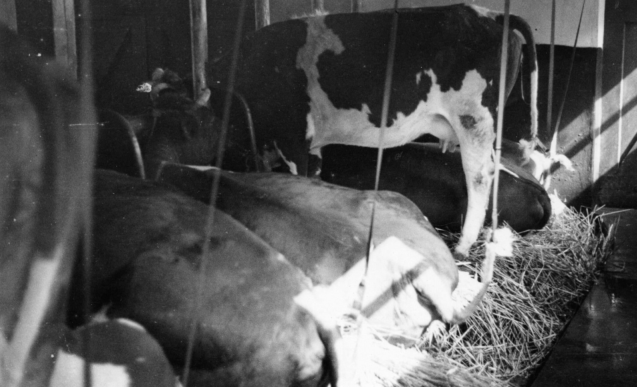 Stal met koeien, Loenen, 1937 (zwart-wit foto)
