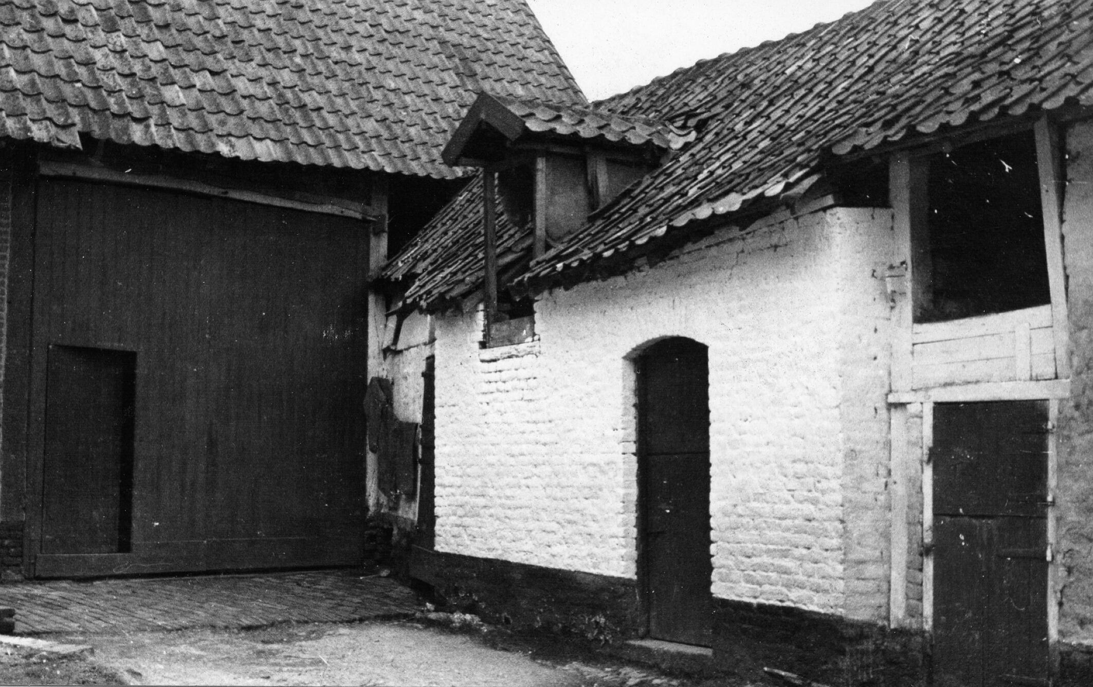 Binnenplaats van een vierkantshoeve, Overeys, 1937 (zwart-wit foto)