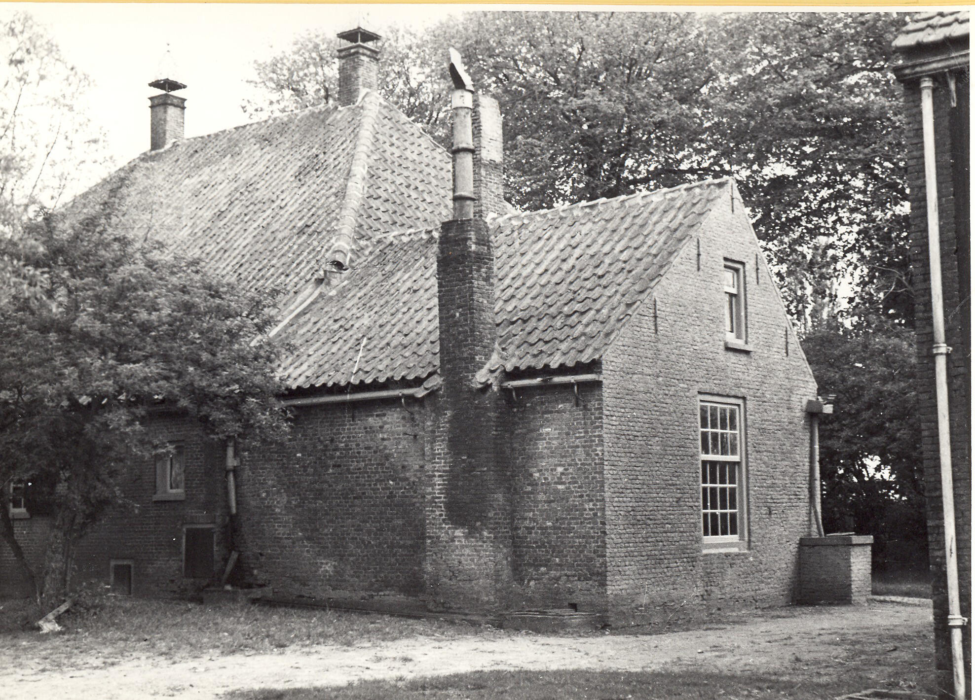 Achter- en zijgevel van boerderij Kreekzicht aan de Korteweg 2 in het Zeeuwse Zonnemaire. Het bakhuis is tegen het woonhuis aangebouwd.