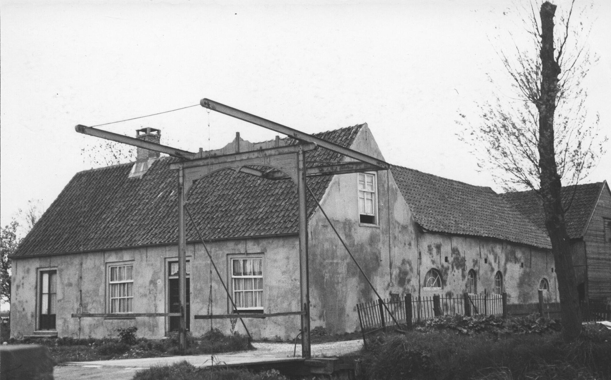 Boerderij en ophaalbrug, Nootdorp, 1937 (zwart-wit negatief)