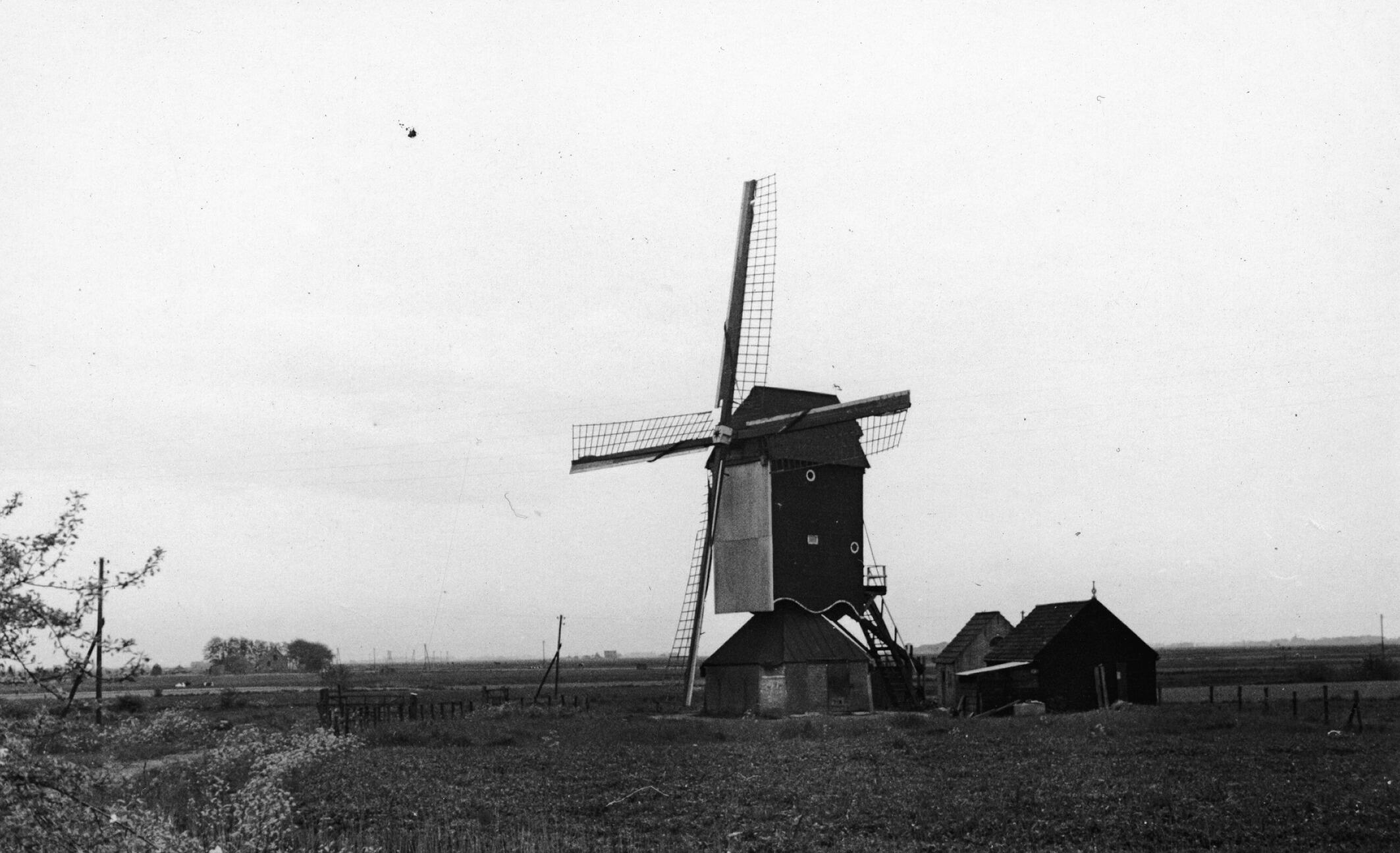 Standerdmolen Het Hert, Brouwershaven, 1937 (zwart-wit foto)
