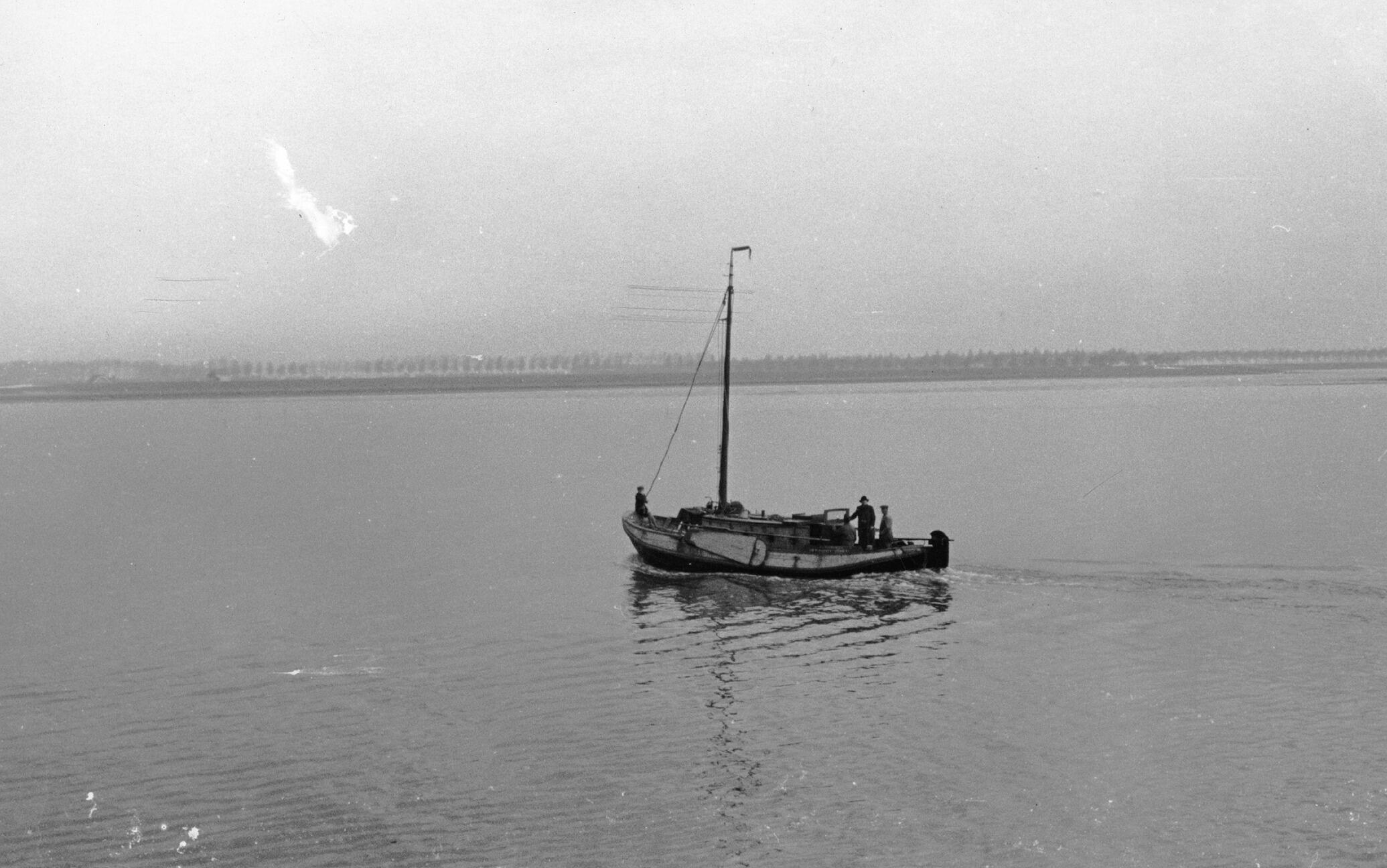 Boot op de Oosterschelde, Zierikzee, 1937 (zwart-wit foto)