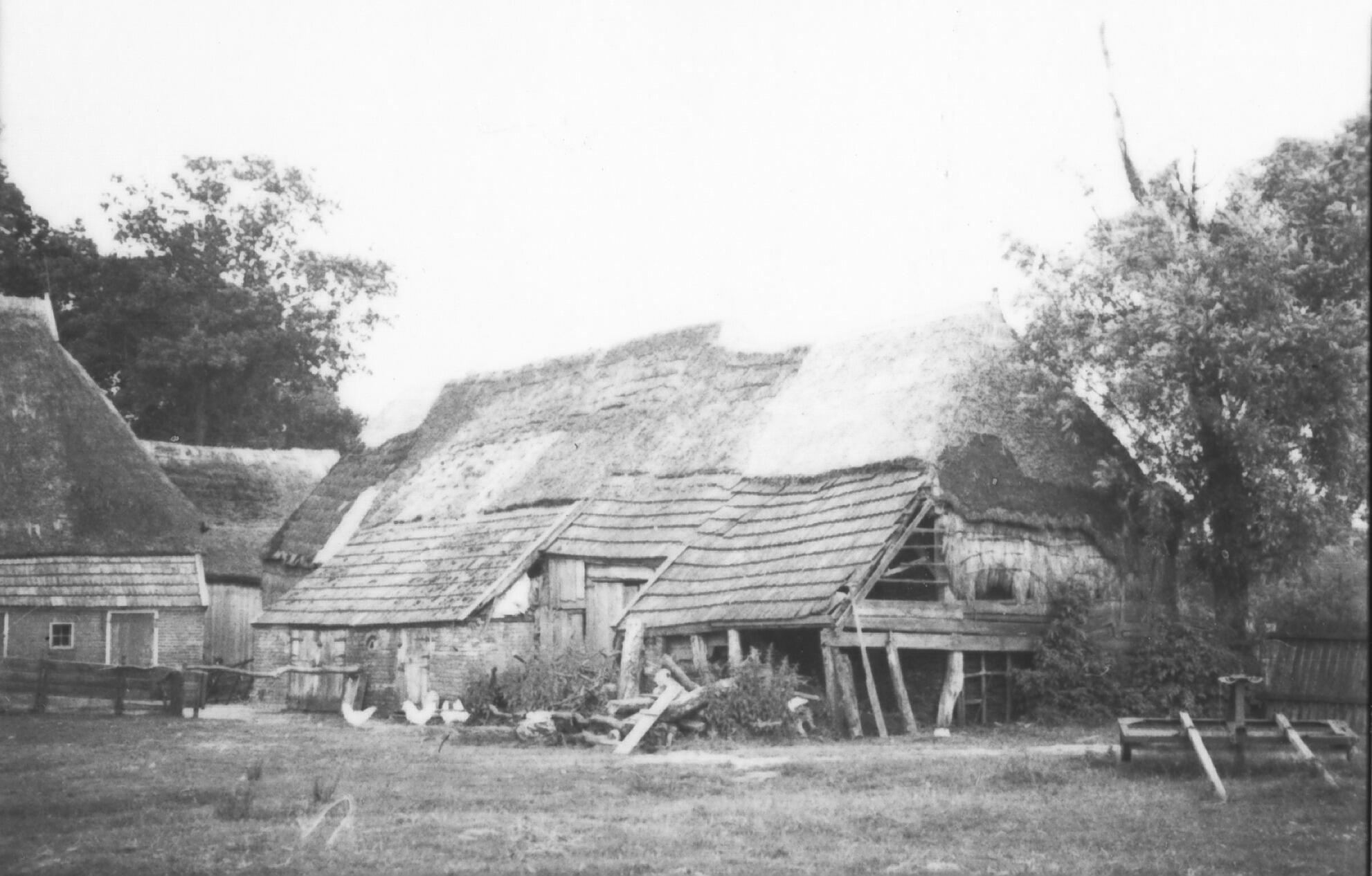 Boerderij met schuur, Zwiggelte, 1937 (zwart-wit negatief)