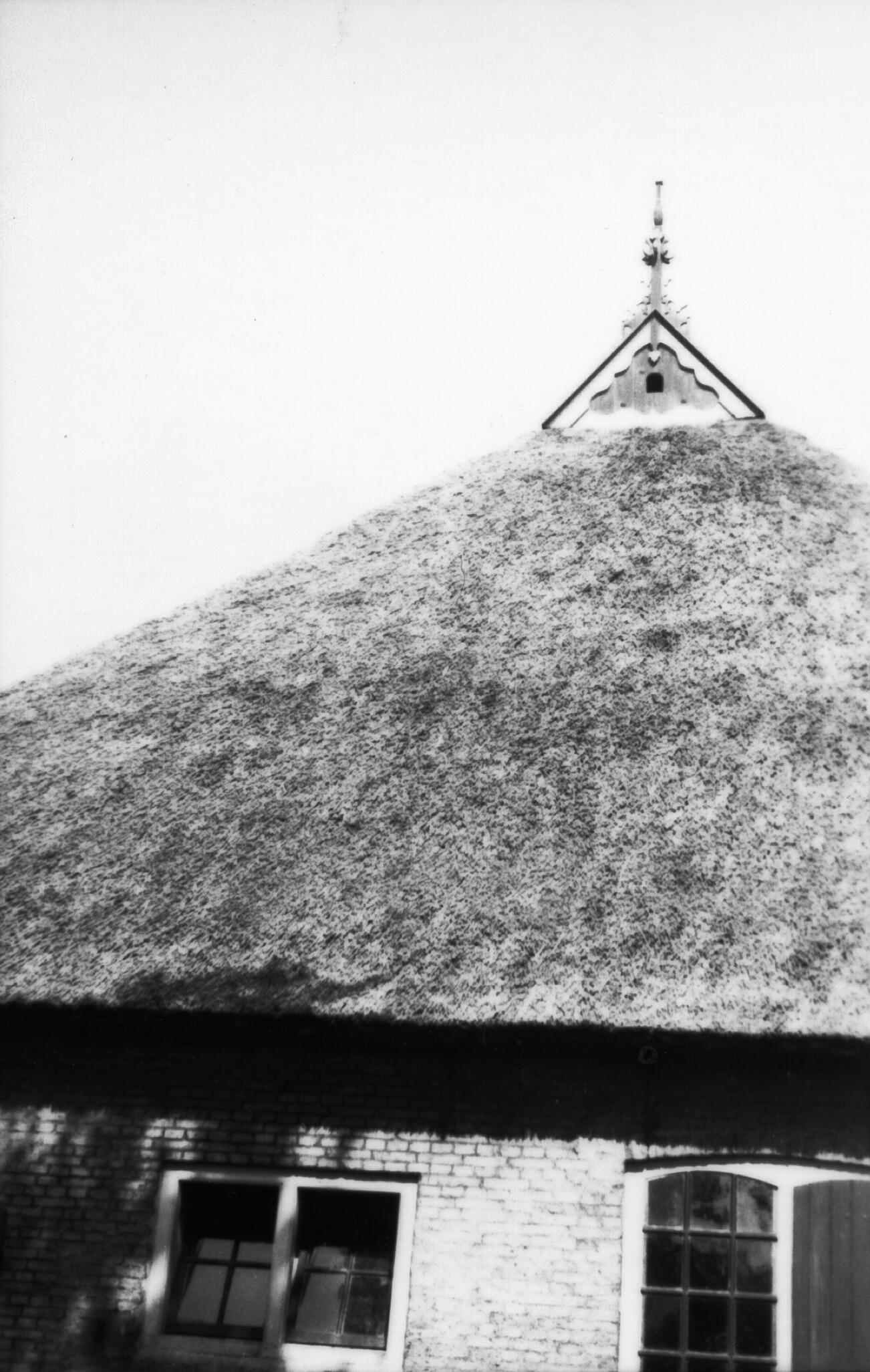 Dak met uilenbord, Sexbierum, 1937 (zwart-wit foto)