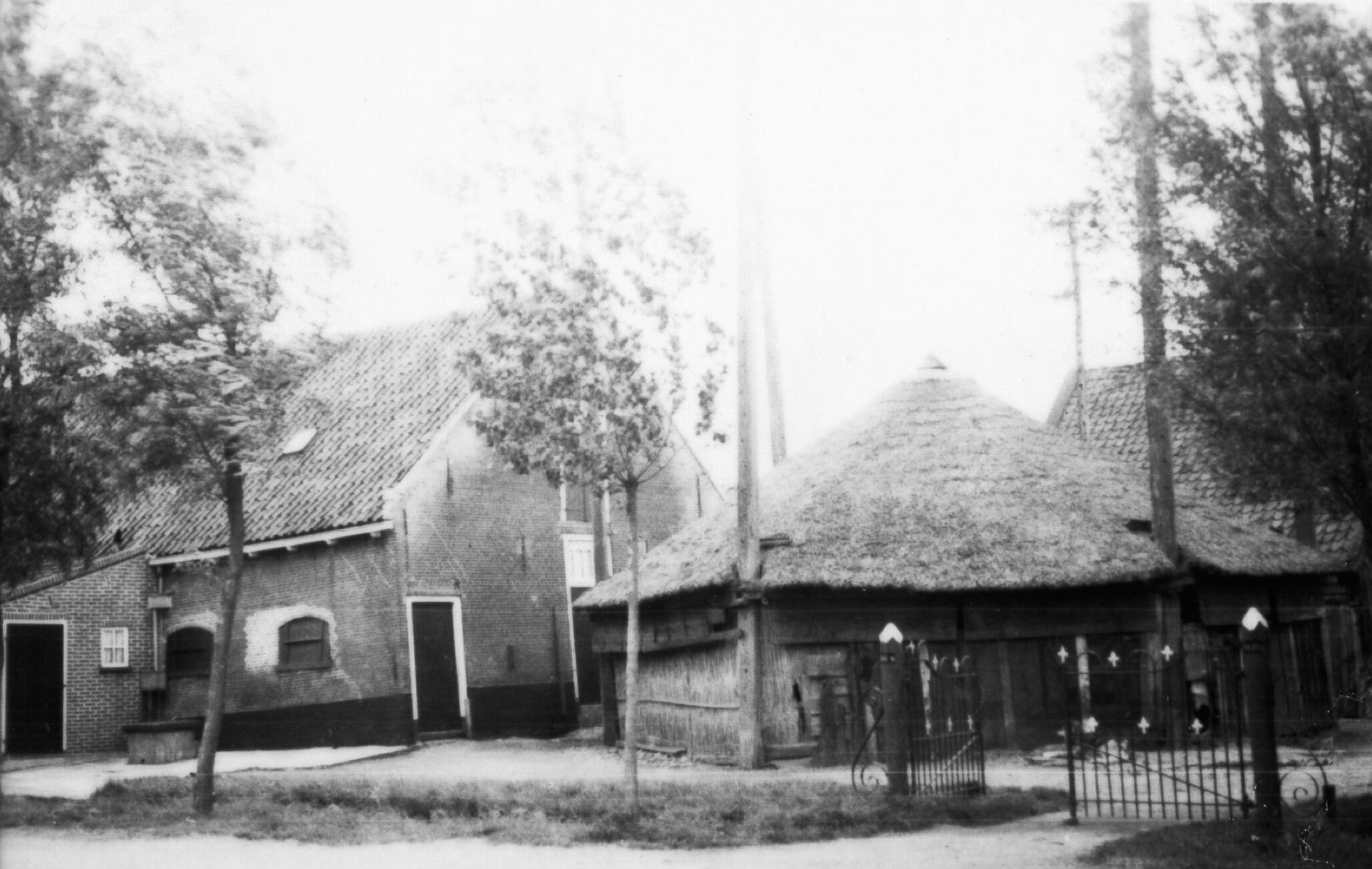 Zij- en achtergevel van een boerderij in het Zuid-Hollandse Nieuwerkerk aan den IJssel, met rechts een schuurberg met een in hoogte verstelbaar dak op zes roeden.