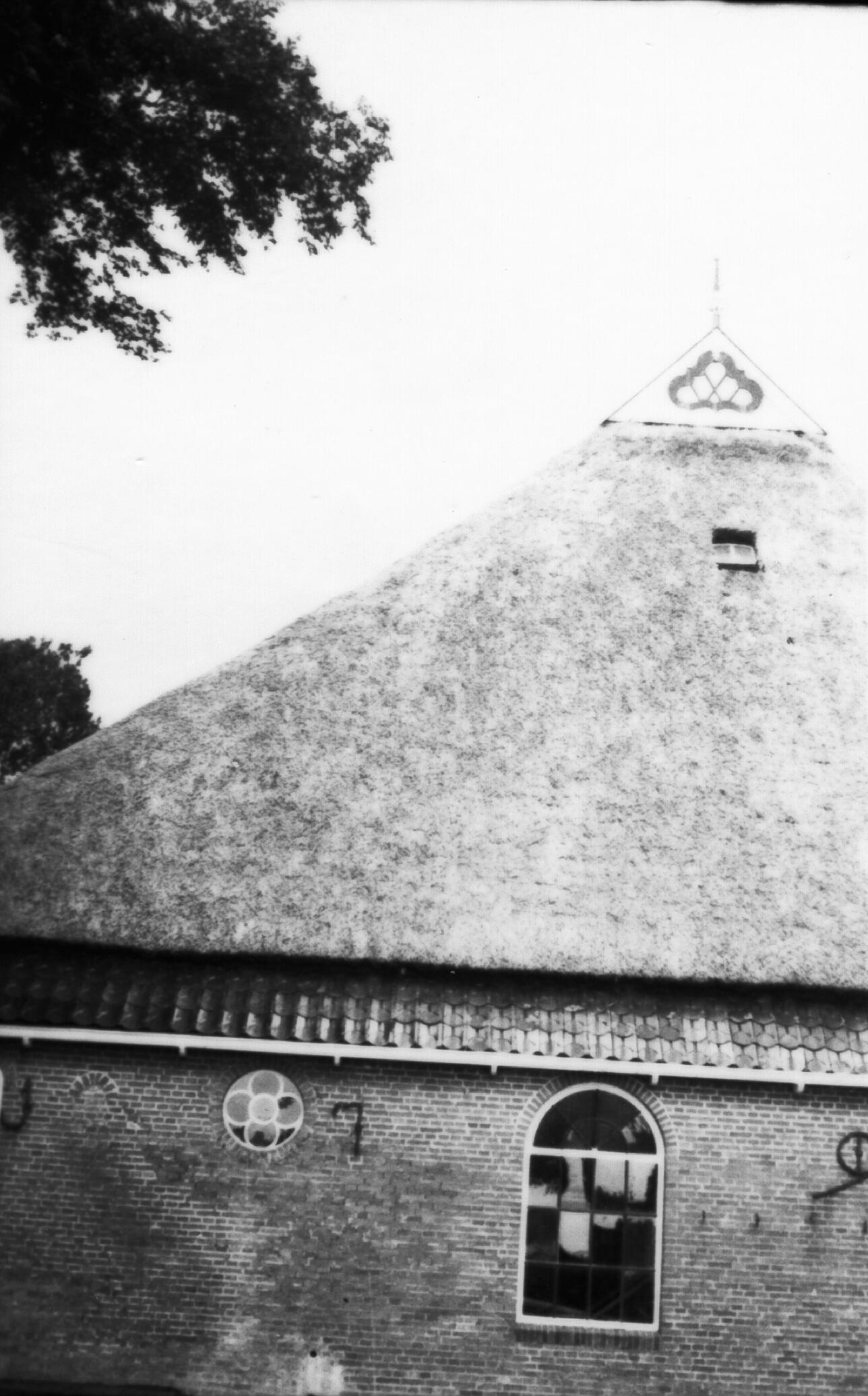 Dak met een uilenbord, Oudebildtzijl, 1937 (zwart-wit foto)