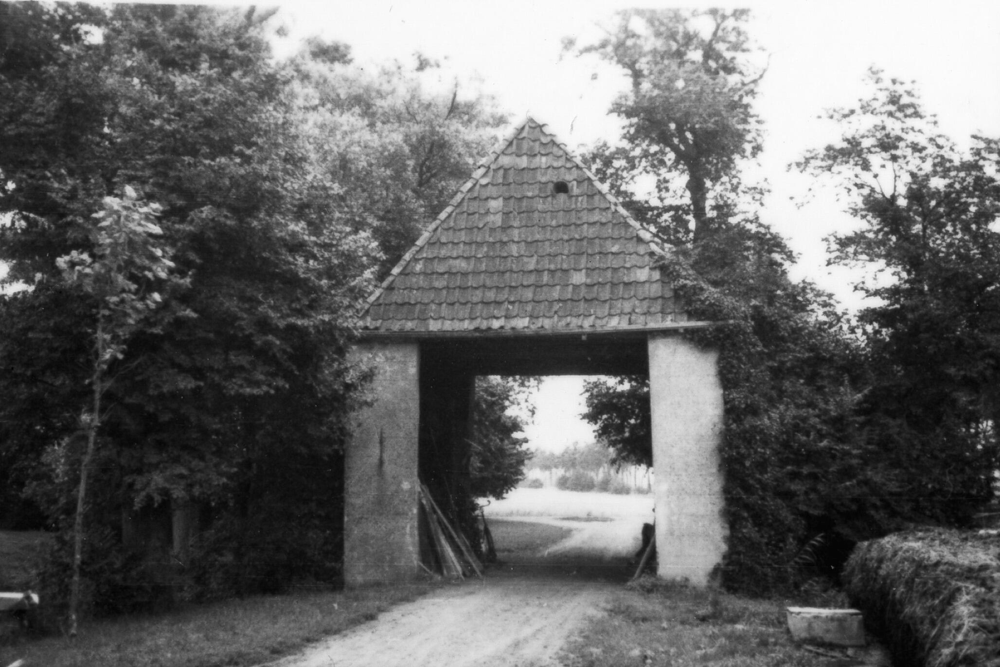 Poortgebouw van boerderij 'Sickema-State', Herbaijum, 1937 (zwart-wit negatief)