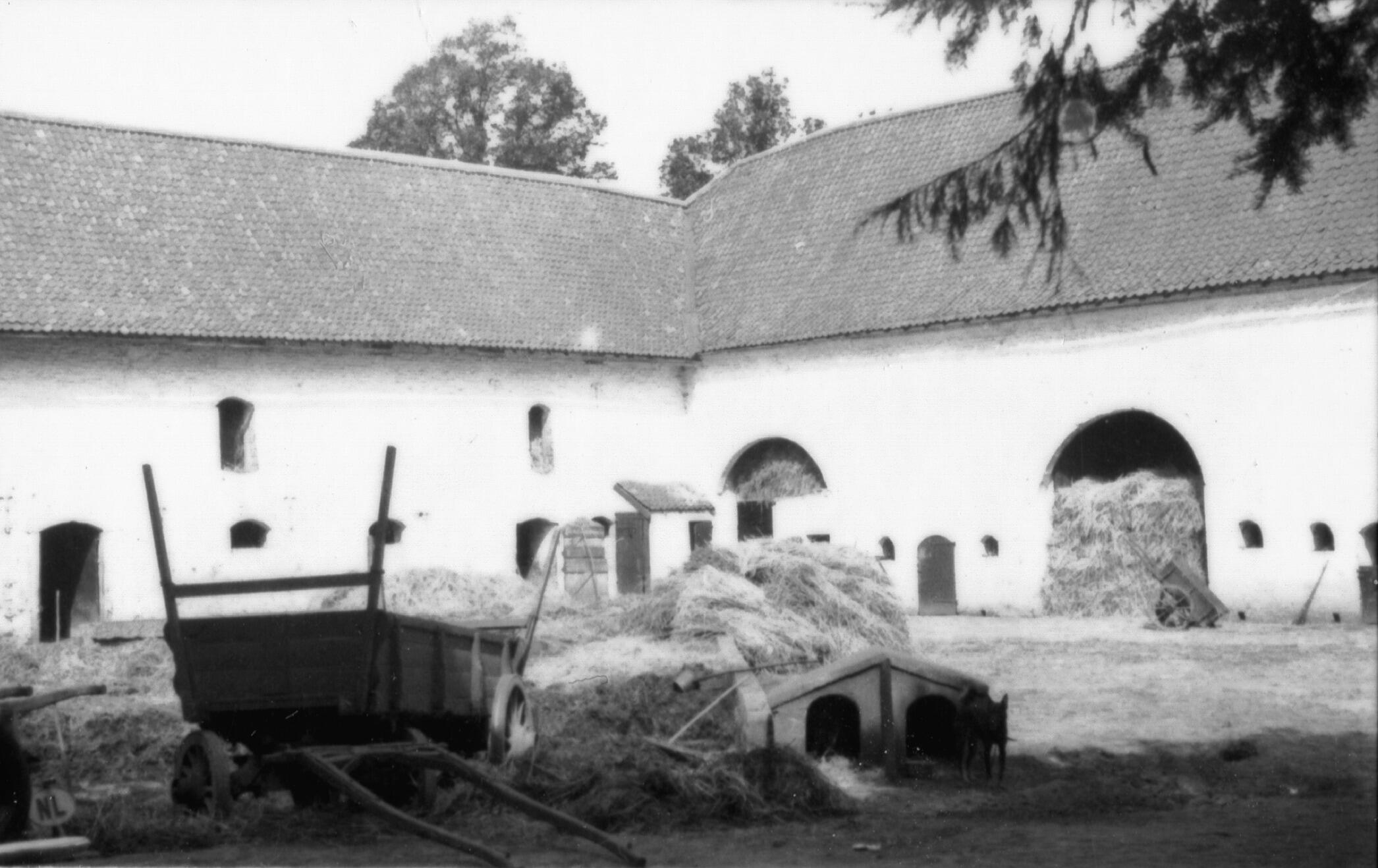 Binnenplaats van kasteelboerderij 'Strijthagen', Schaesberg, 1937 (zwart-wit foto)