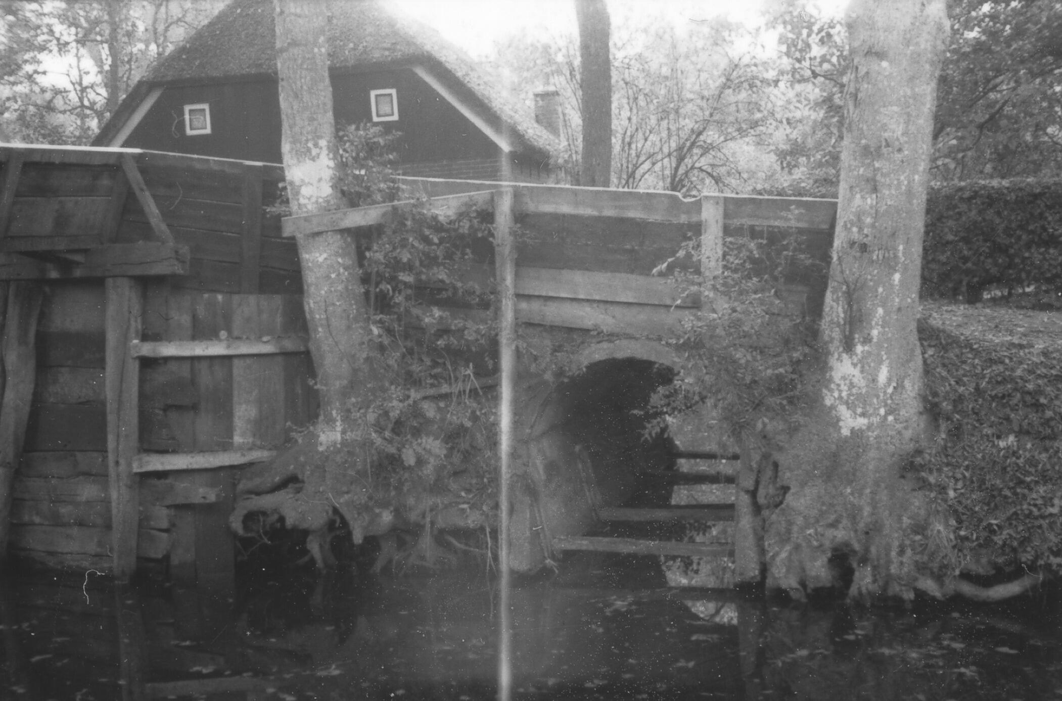 Houten brug met een duiker, Giethoorn, 1937 (zwart-wit foto)