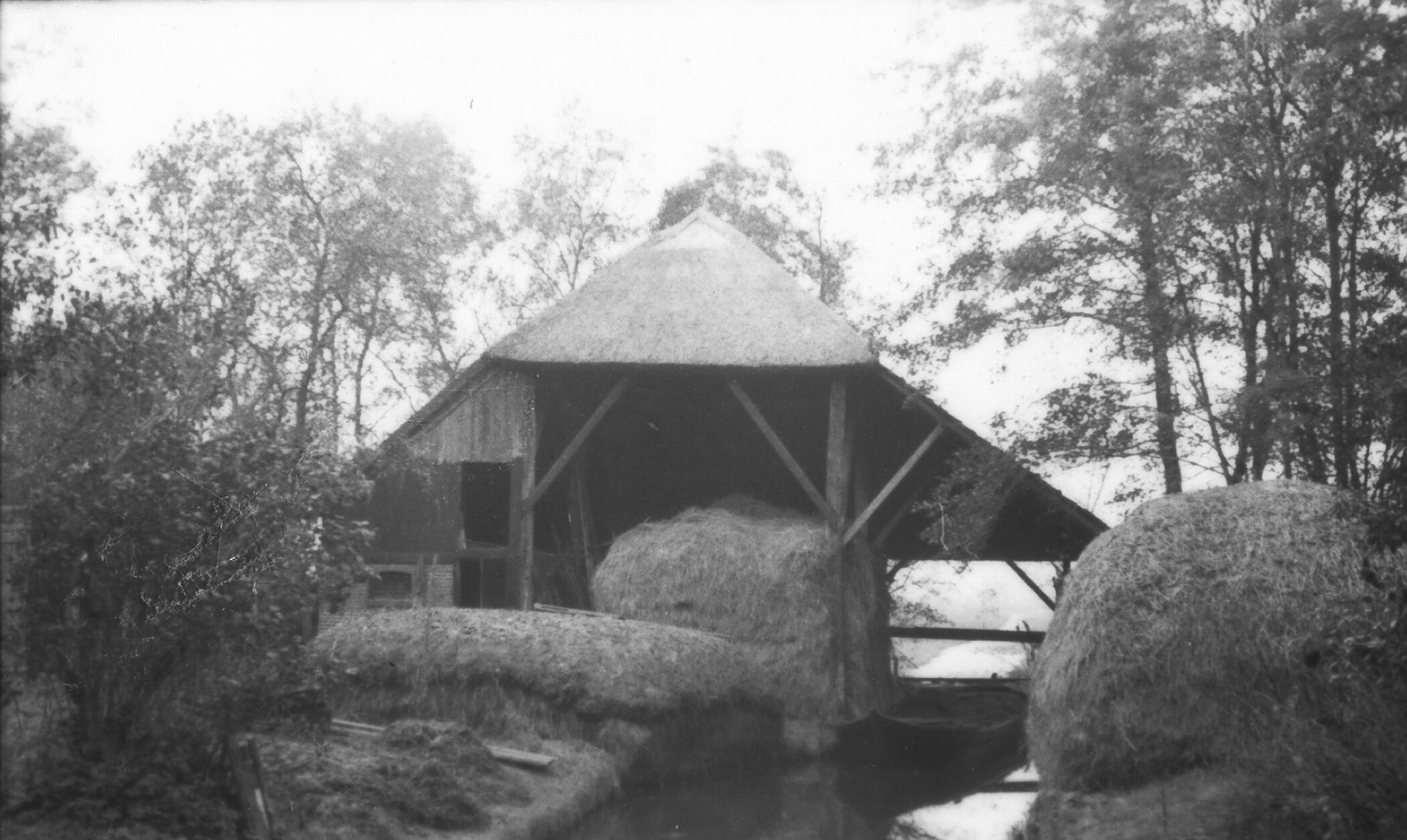 Hooischuur, Giethoorn, 1937 (zwart-wit foto)