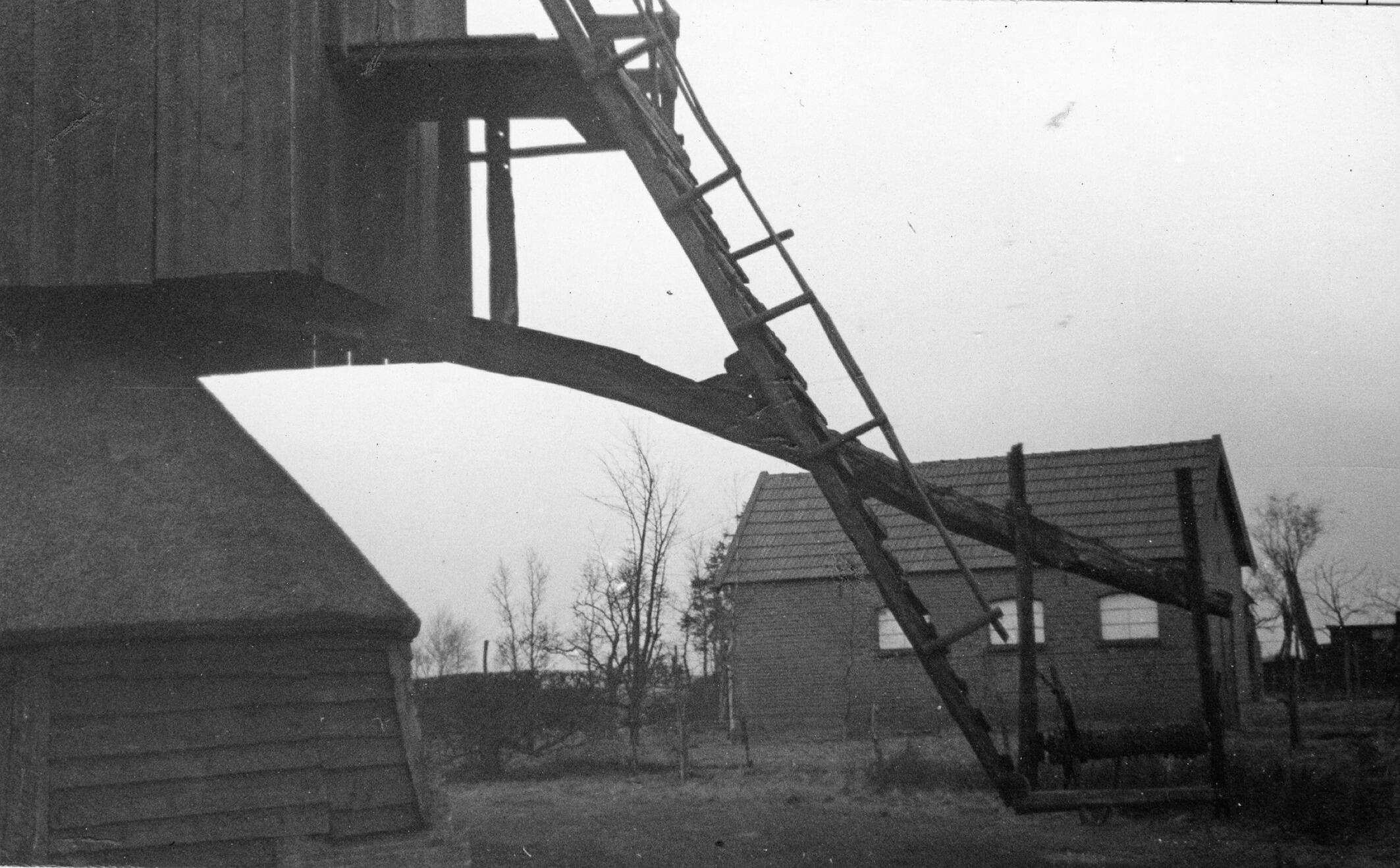 Staart van standerdmolen 'Doesburgermolen', Doesburgerbuurt, 1938 (zwart-wit foto)