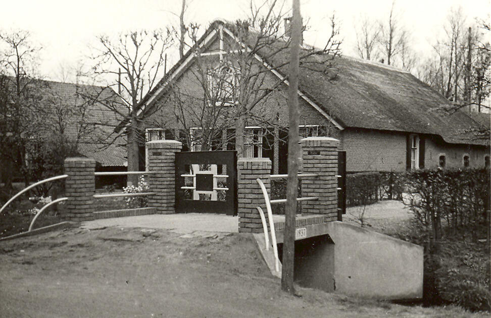 Brug met een versierd toegangshek voor een boerderij in het Utrechtse Achttienhoven.
