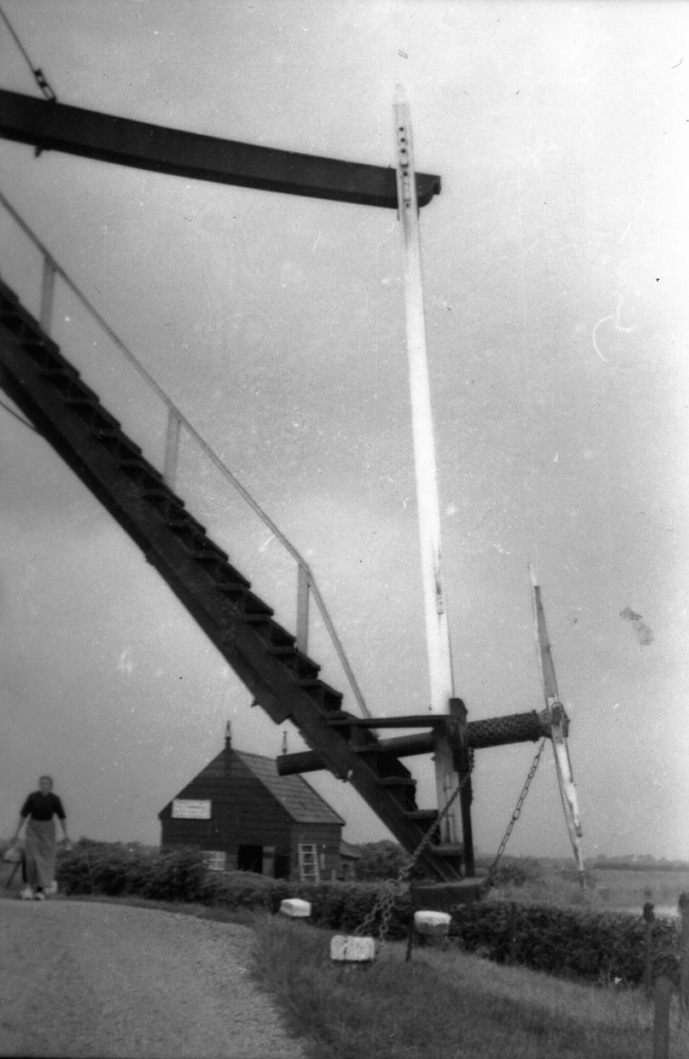 Staart van een wipmolen, Goudriaan, 1938 (zwart-wit foto)