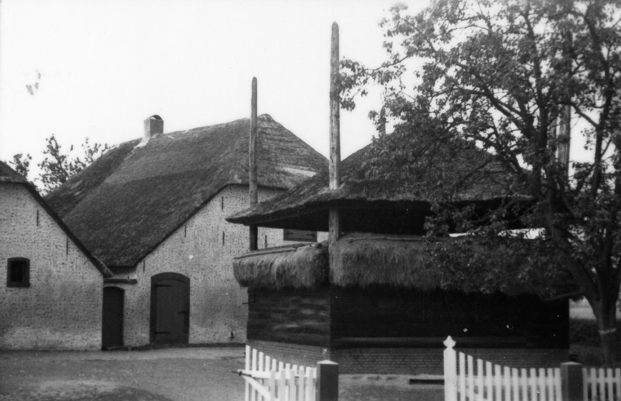 Boerderij en een hooiberg, Kesteren, 1938 (zwart-wit negatief)