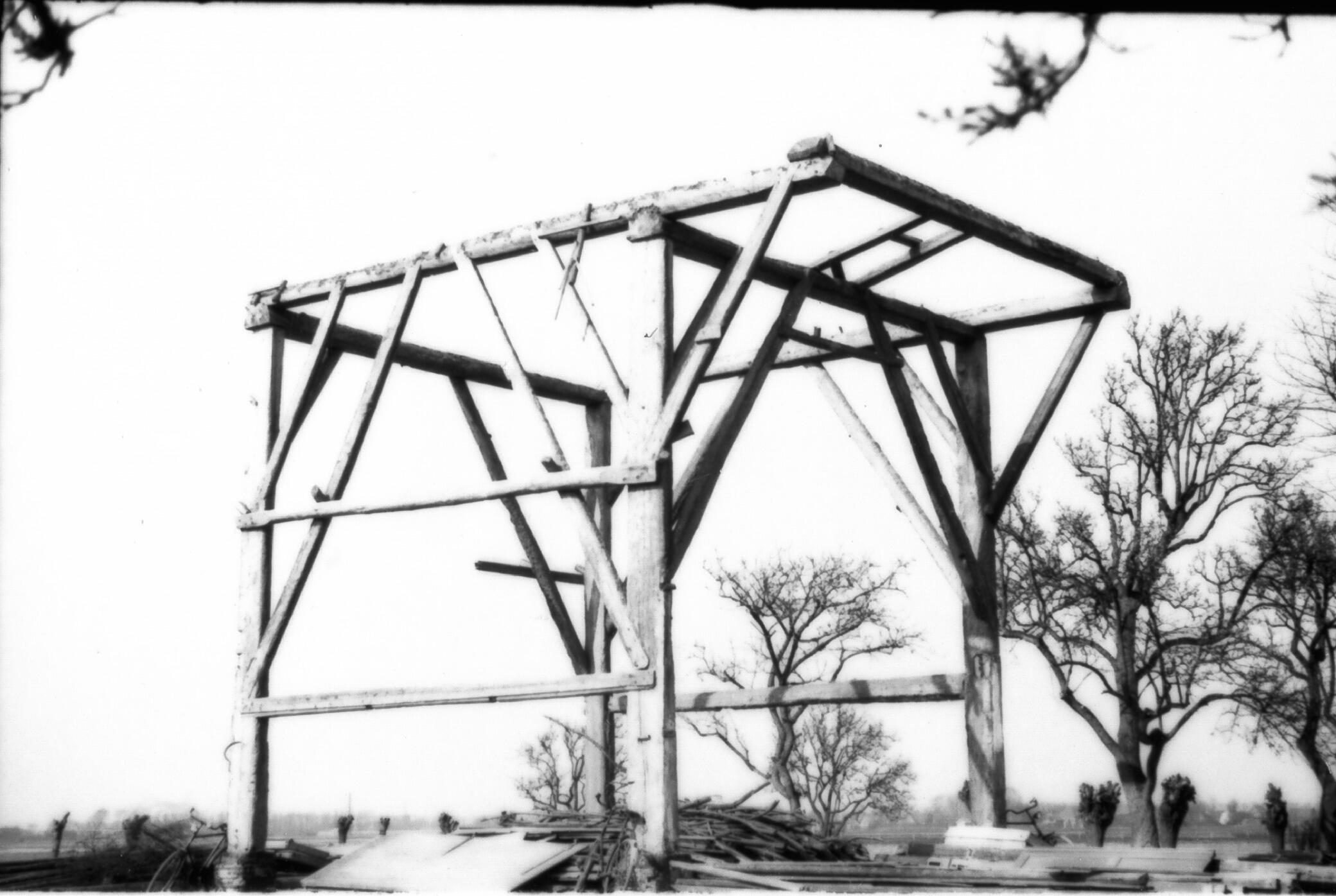 Gebint van een boerderij, Heerhugowaard, 1938 (zwart-wit negatief)
