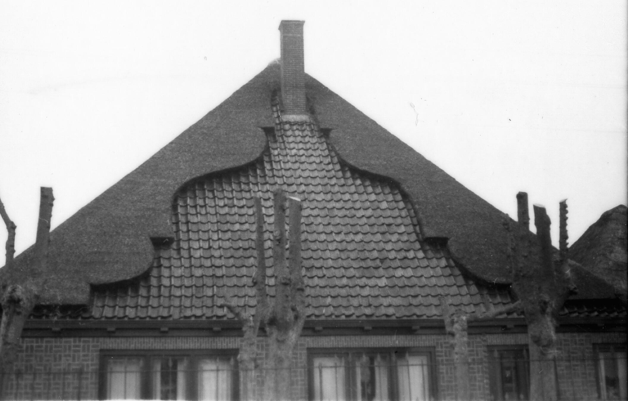 Dakspiegel van een stolpboerderij, Koedijk, 1939 (zwart-wit foto)