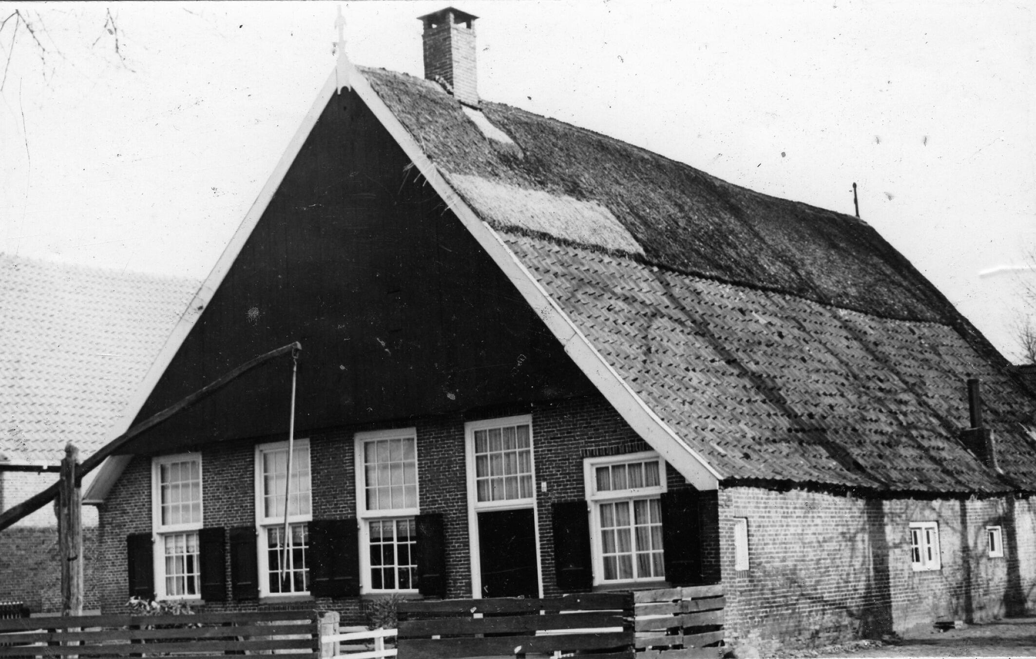 Zij- en voorgevel van hallenhuisboerderij 'Fik' in het Overijsselse Vriezenveen. De boerderij heeft een houten topgevel en op het dak een makelaar. Voor de boerderij staat een waterput met een puthaal. De boerderij is volgens een inscriptie in een baksteen gebouwd in 1820. In 1948 is de boerderij gesloopt.