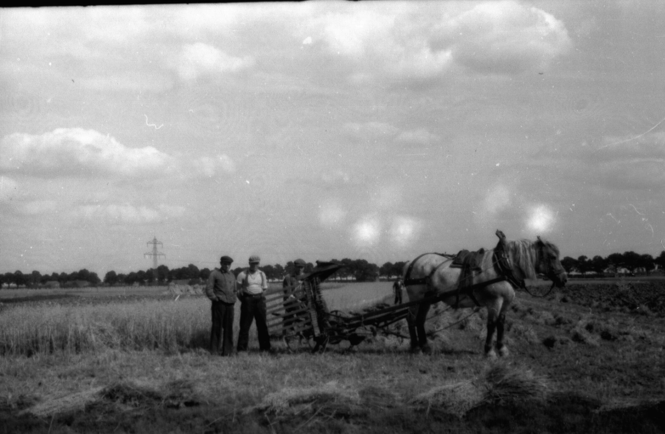 Paard met maaimachine, Maasbracht, 1940 (zwart-wit foto)