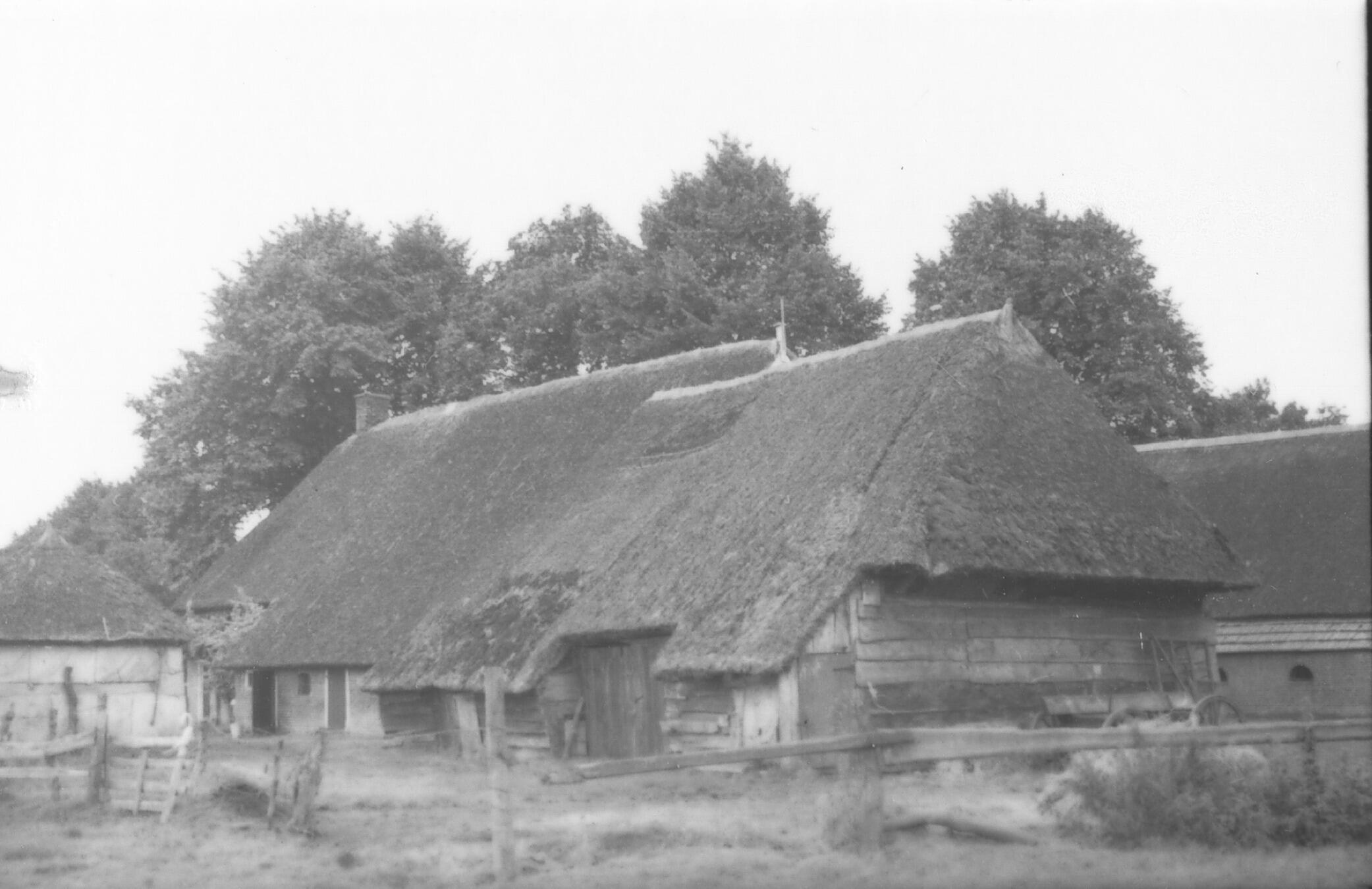 Boerderij en schuur, Hooghalen, 1940 (zwart-wit negatief)