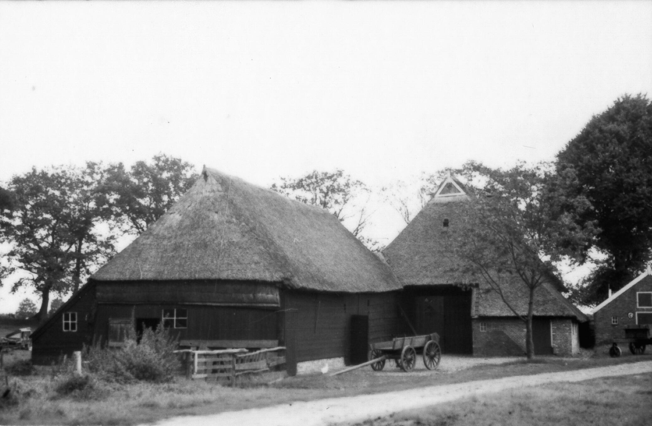 Boerderij en bijschuur, Hooghalen, 1940 (zwart-wit negatief)