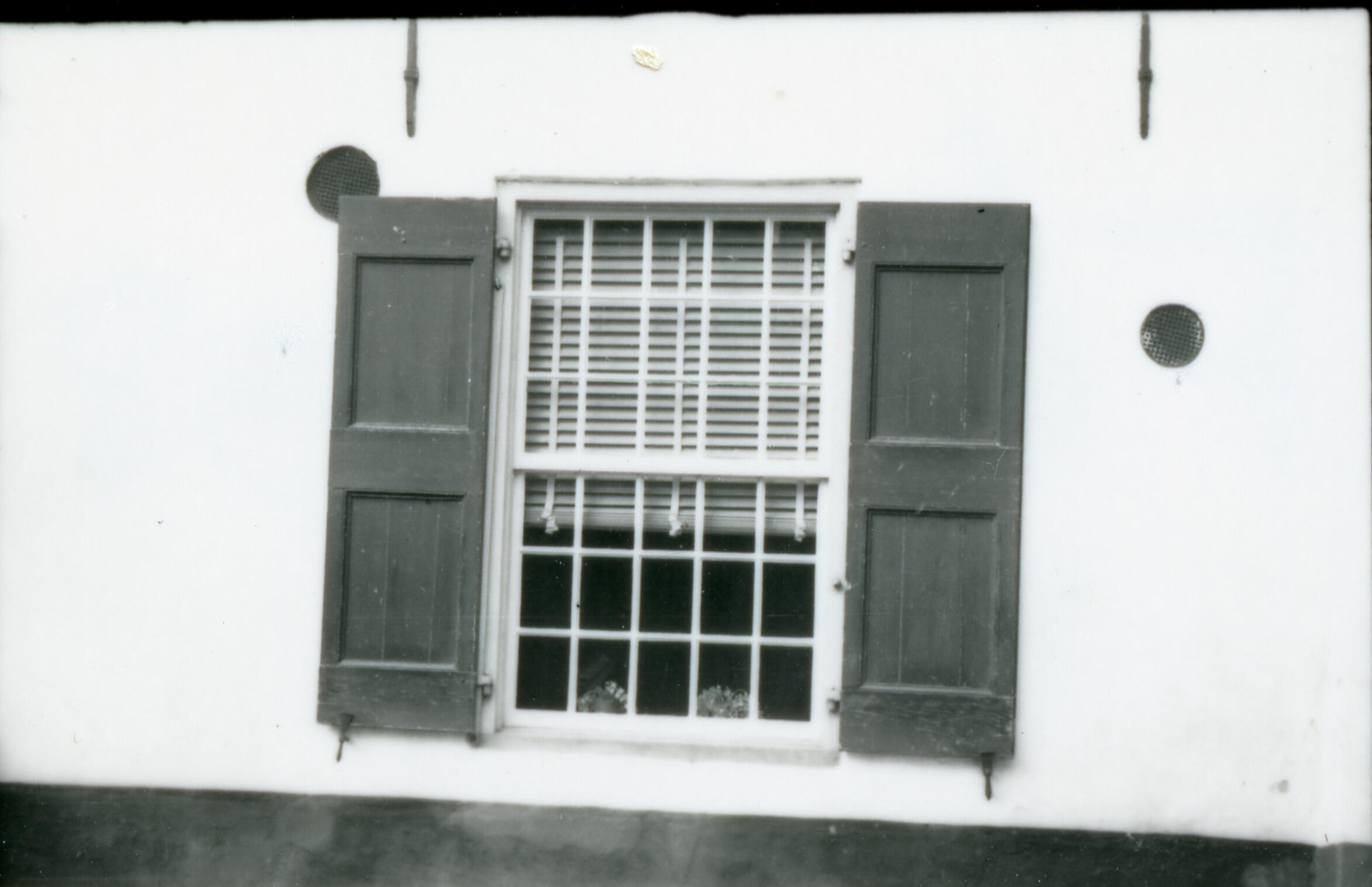 Raam van boerderij 'De Clef', Ewijk, 1940 (zwart-wit foto)