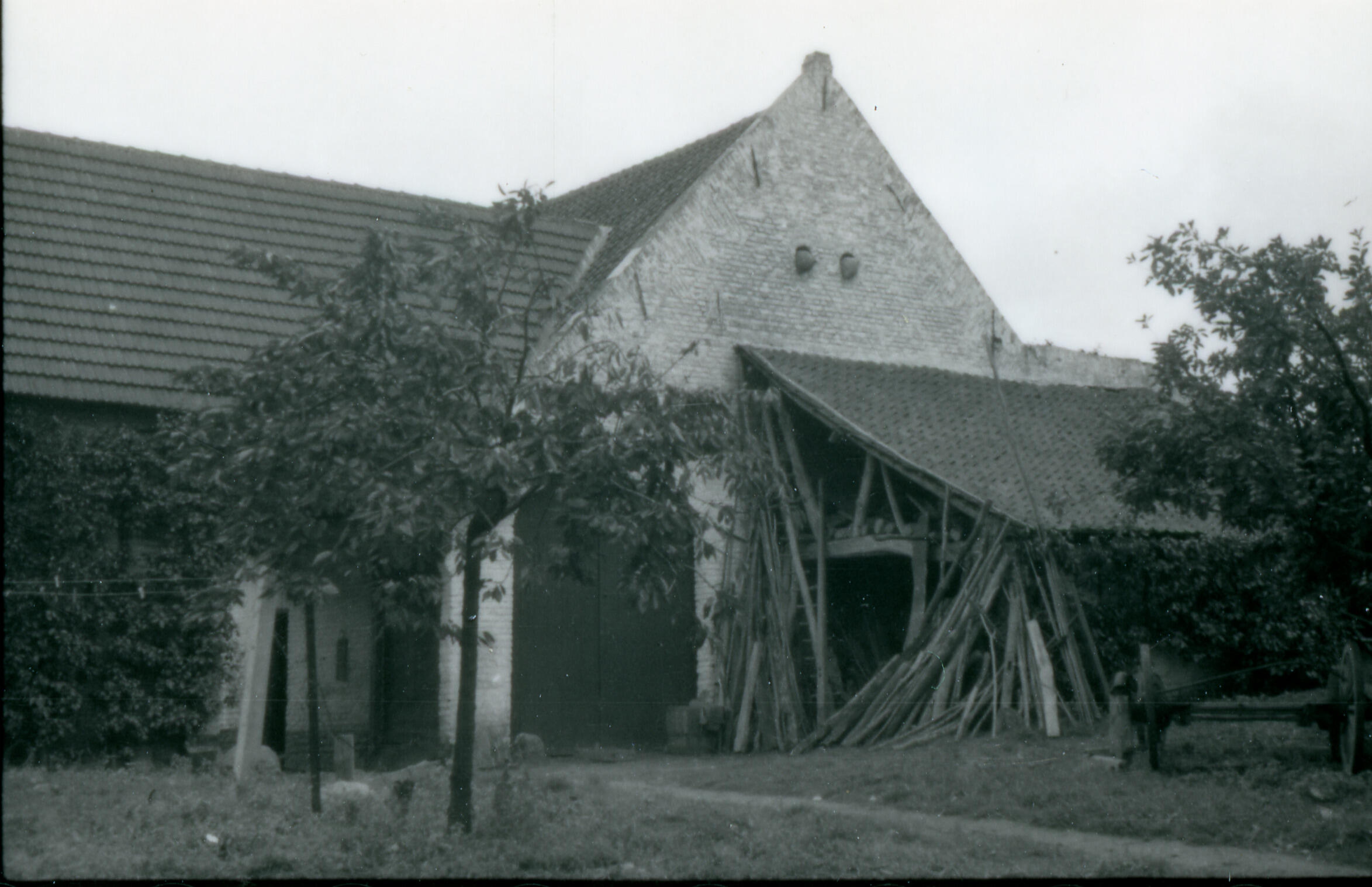 Achtergevel van een vierkantshoeve, Maasbracht, 1940 (zwart-wit foto)