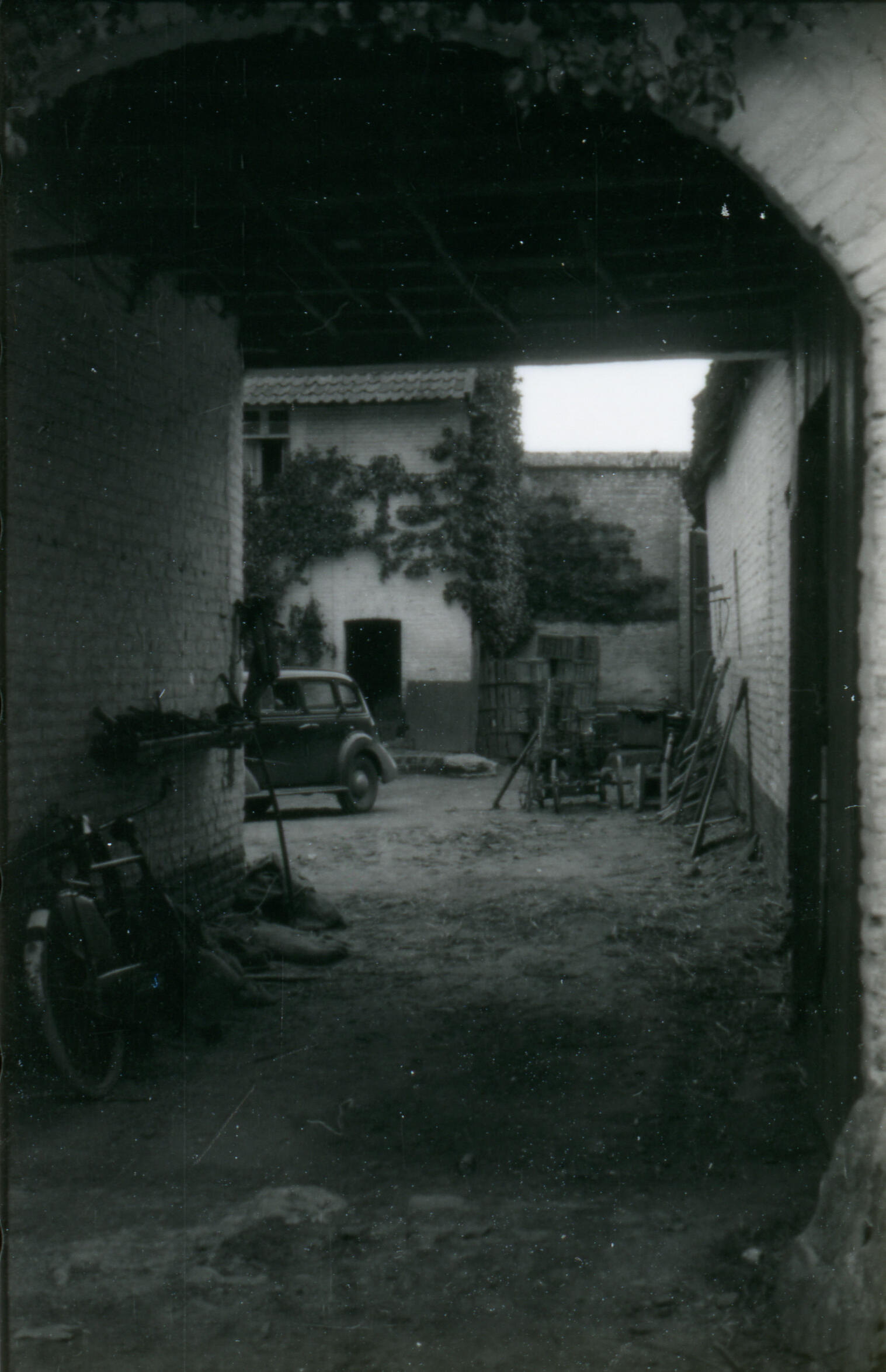 Achterpoort van een vierkantshoeve, Maasbracht, 1940 (zwart-wit foto)