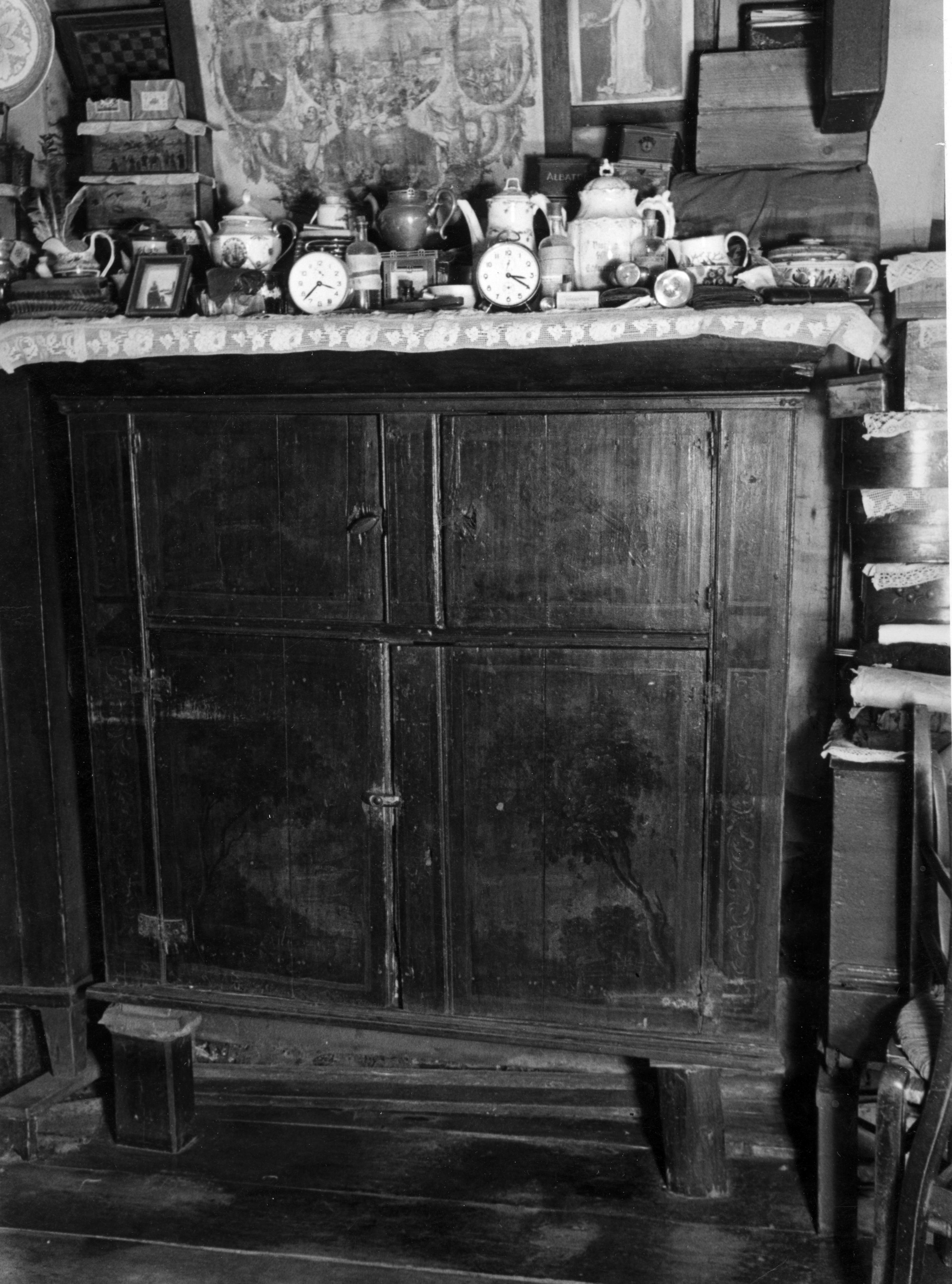 Beschilderde houten kast in een woning op Marken.