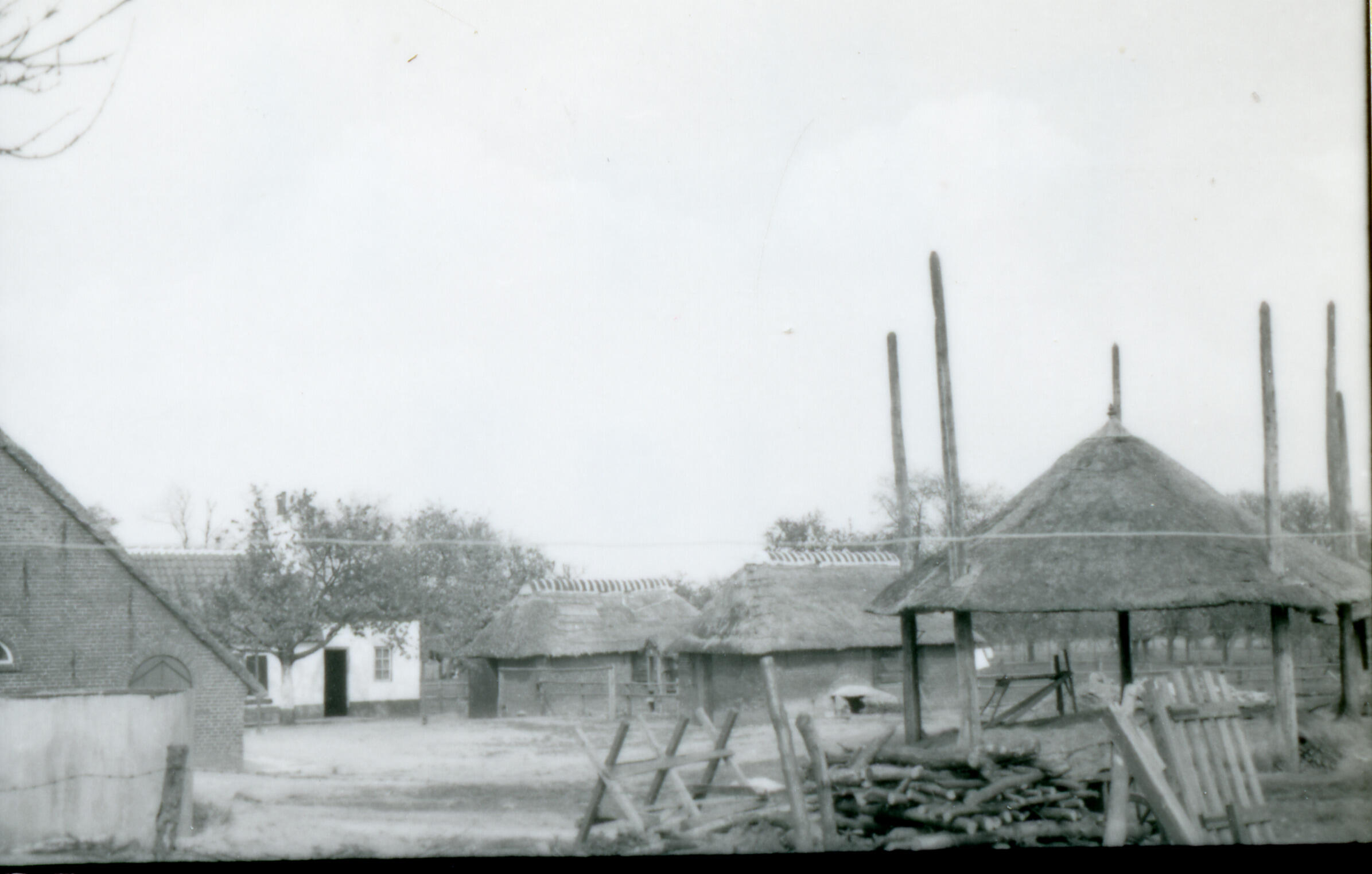 Schuren en een hooiberg, Achterberg, 1942 (zwart-wit foto)