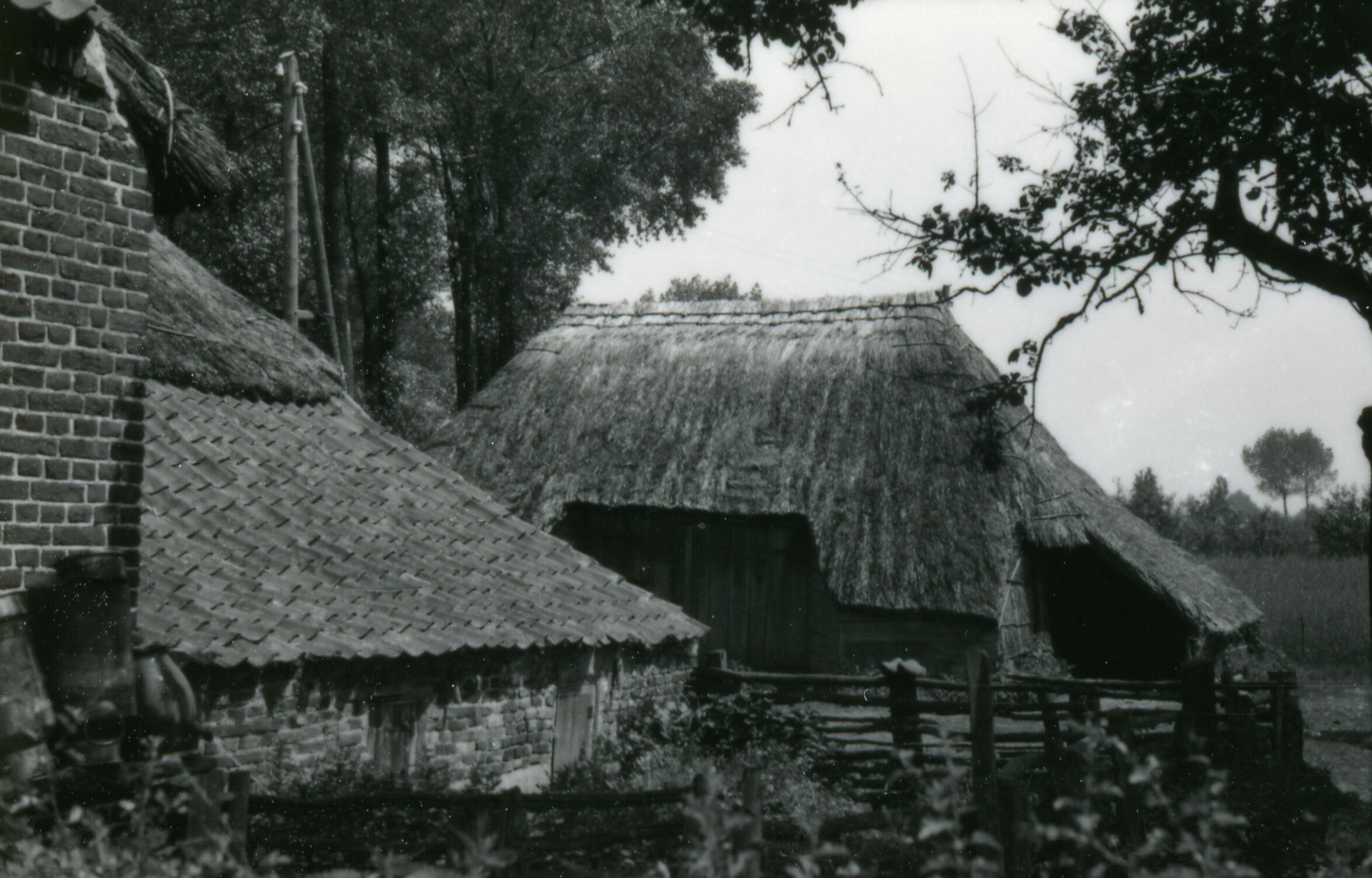 Boerderij met een bijschuur, Beers, 1942 (zwart-wit foto)