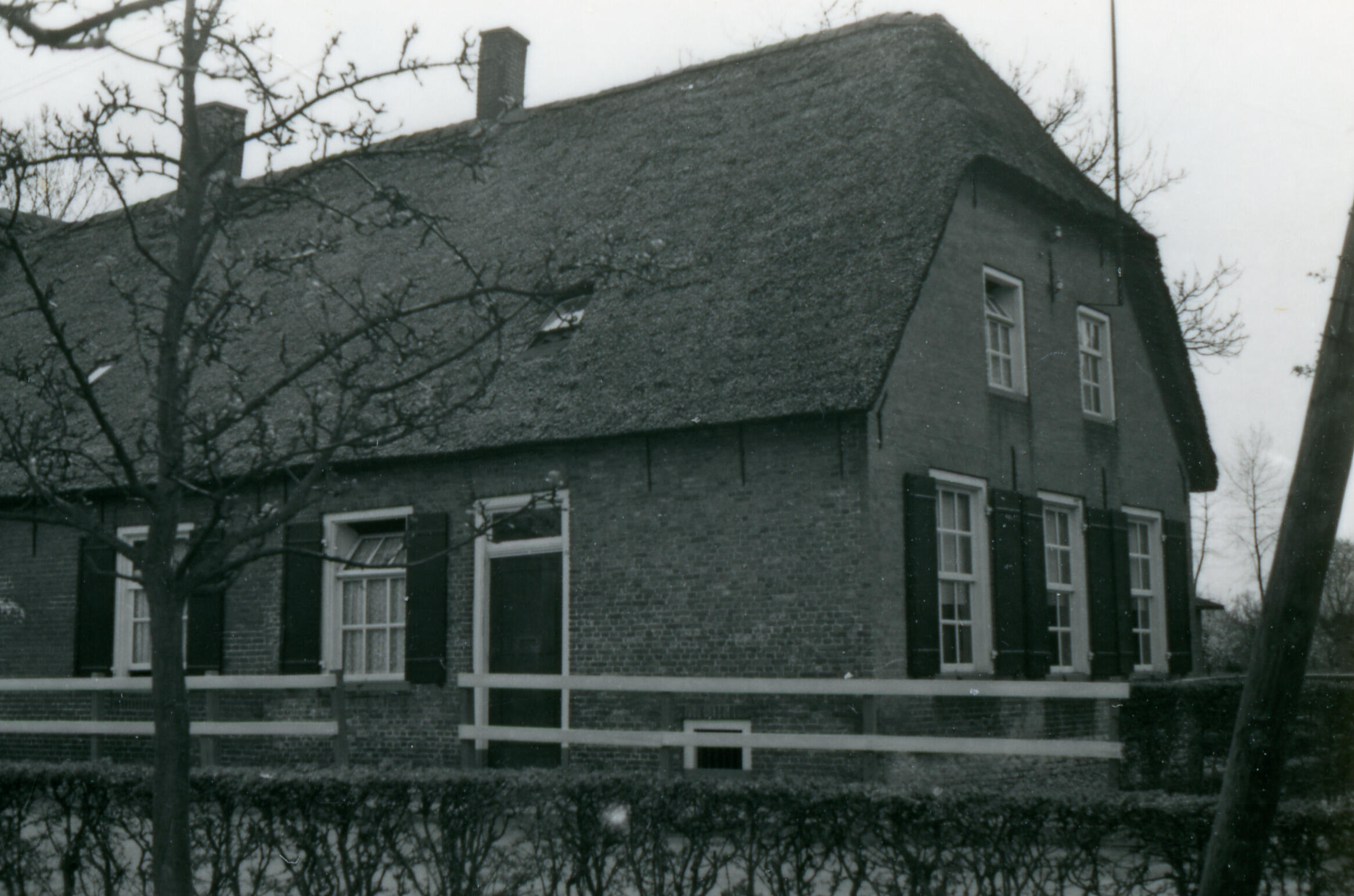 Boerderij met een dwarsschuur, Genderen, 1943 (zwart-wit foto)