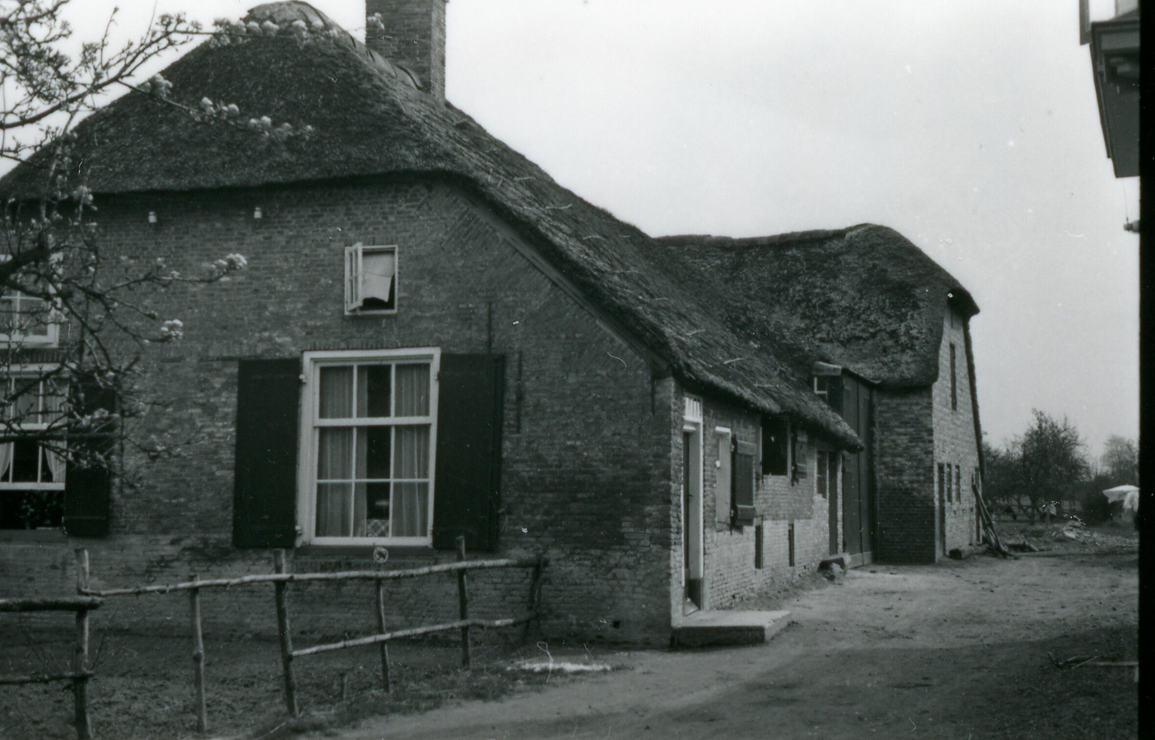 Boerderij met een dwarsschuur, Genderen, 1943 (zwart-wit foto)