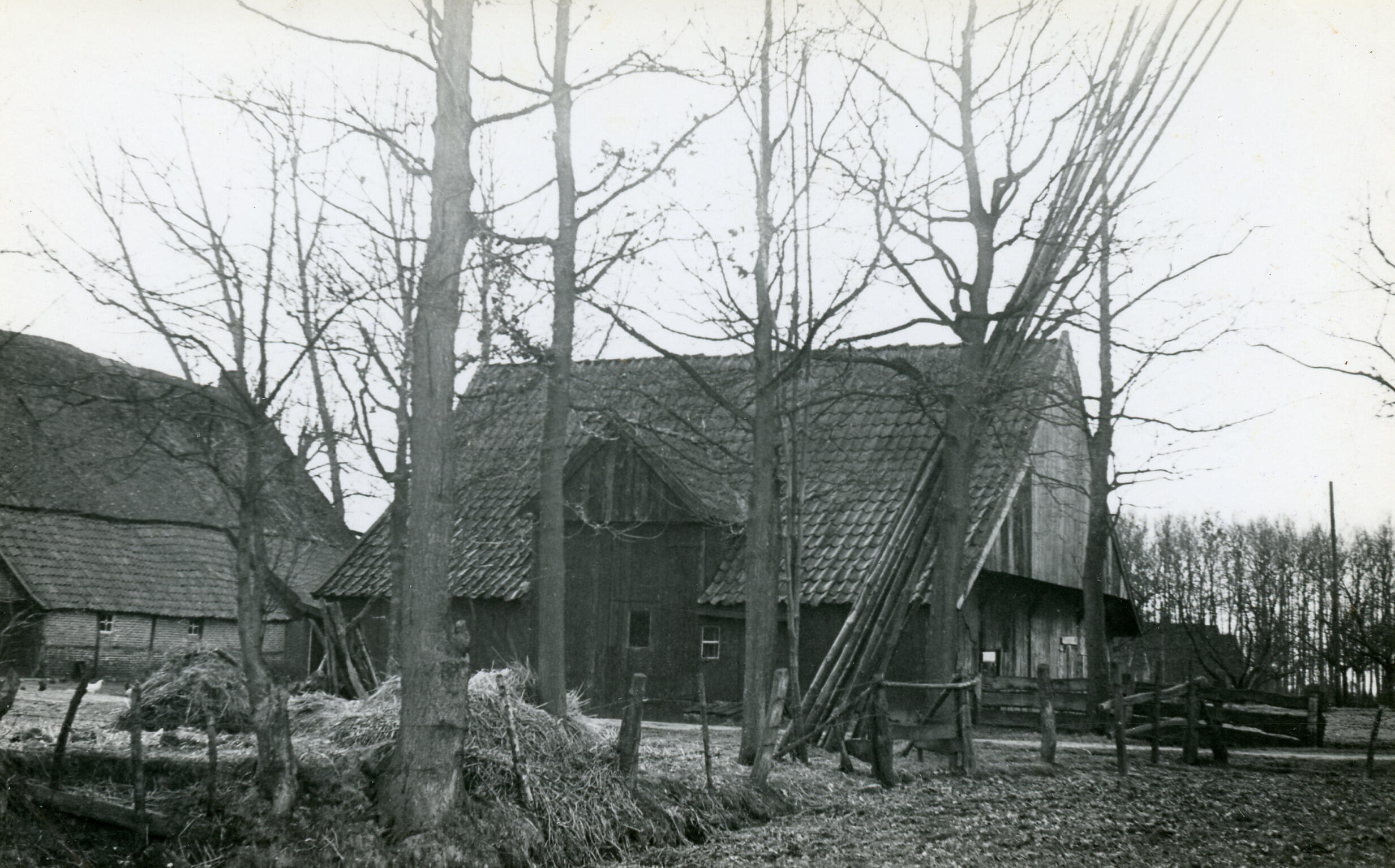 Boerderij en schuur, Beuningen, 1939 (zwart-wit foto)