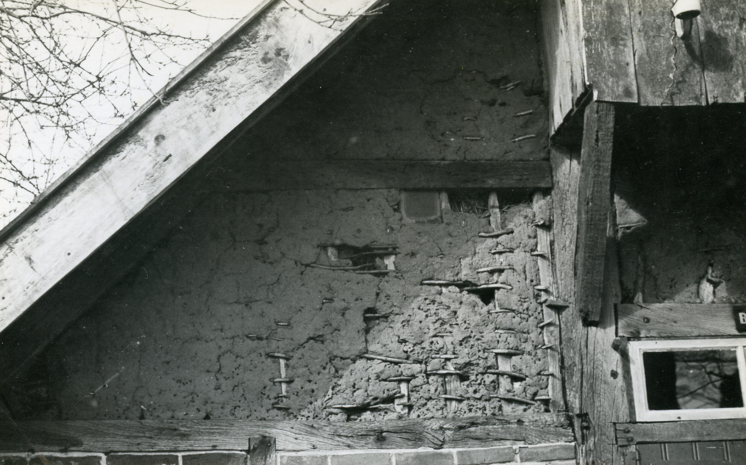 Vakwerkbouw van een boerderij, Berghum, 1939 (zwart-wit foto)