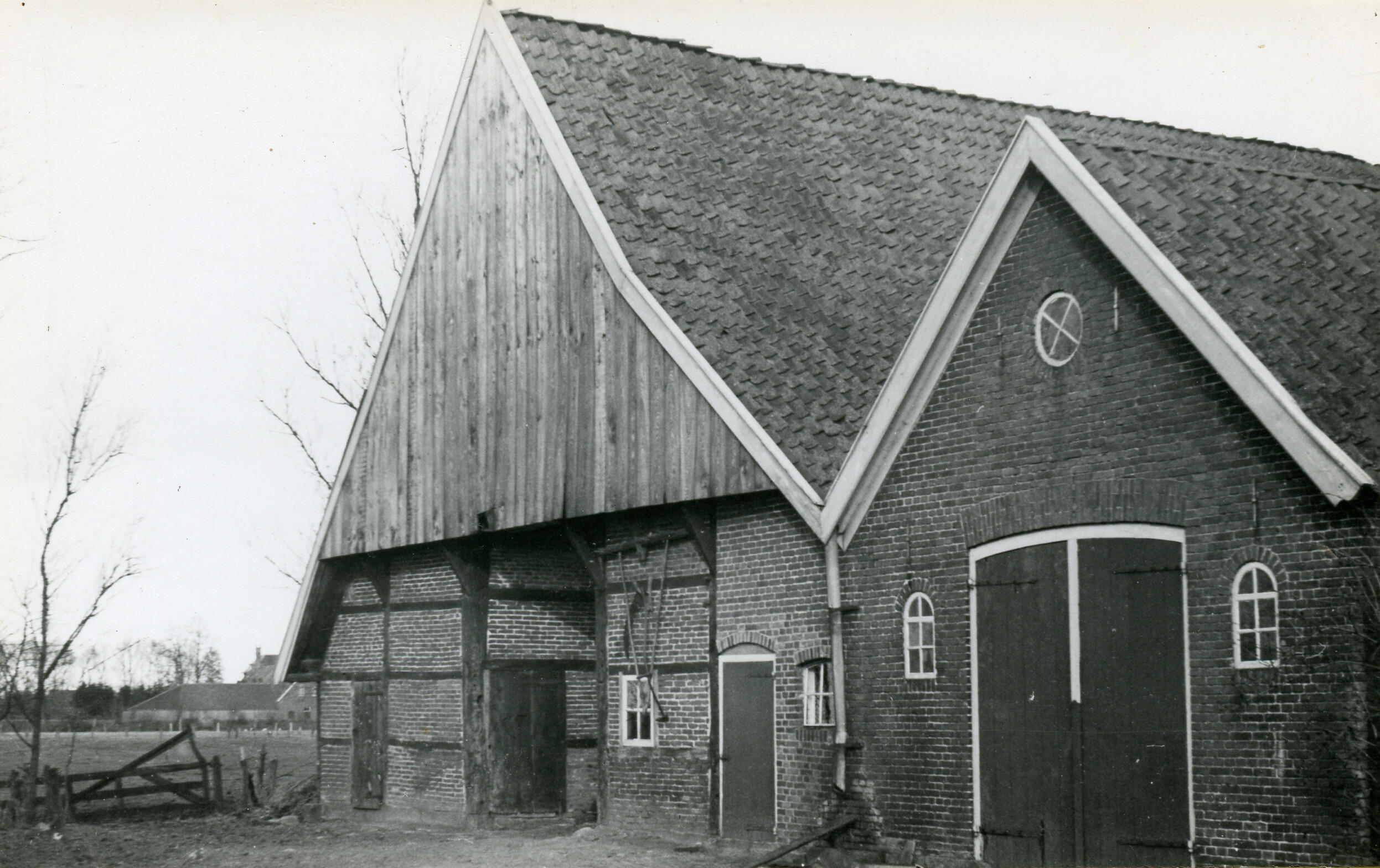 Boerderij met een aangebouwde schuur, Denekamp, 1939 (zwart-wit foto)