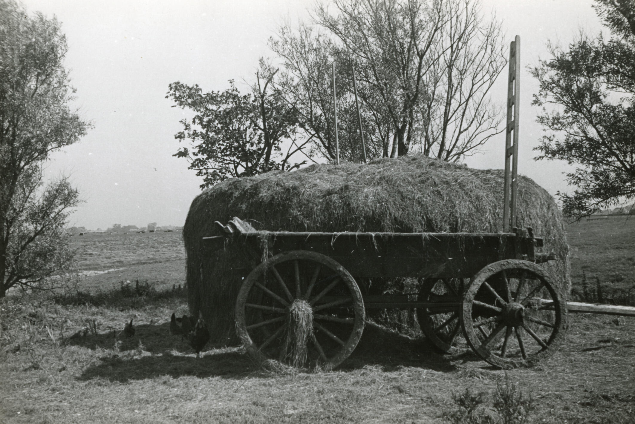 Boerenwagen met groenvoer, Zuiderhorn, 1939 (zwart-wit foto)