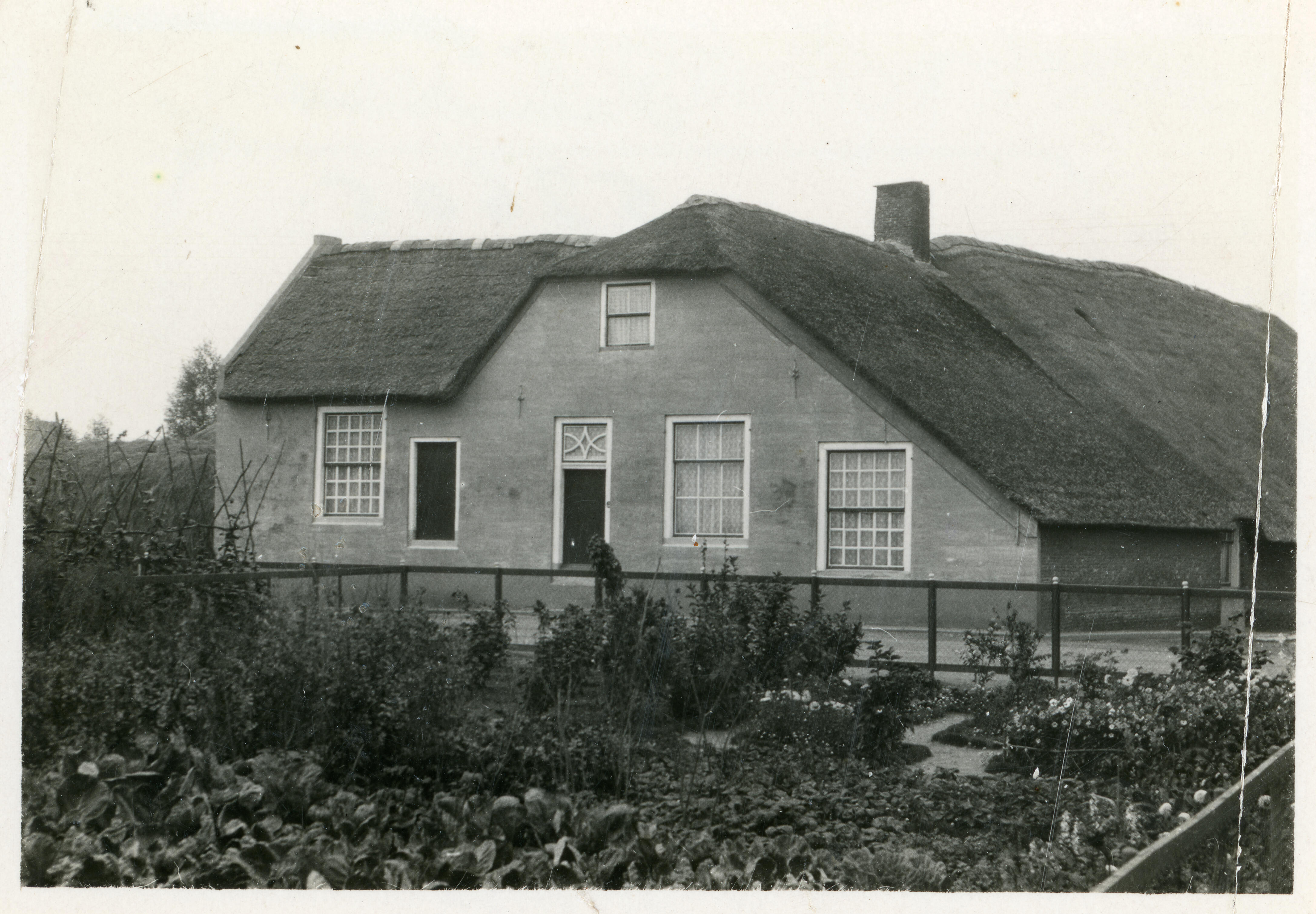 Voorgevel van een boerderij in het Zuid-Hollandse Giessen-Oudekerk. Voor de boerderij ligt een moestuin.