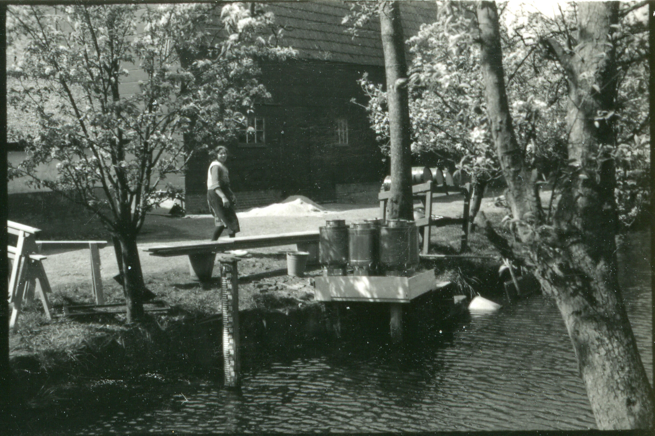 Spoelplaats bij een boerderij, Lexmond, 1935 (zwart-wit foto)