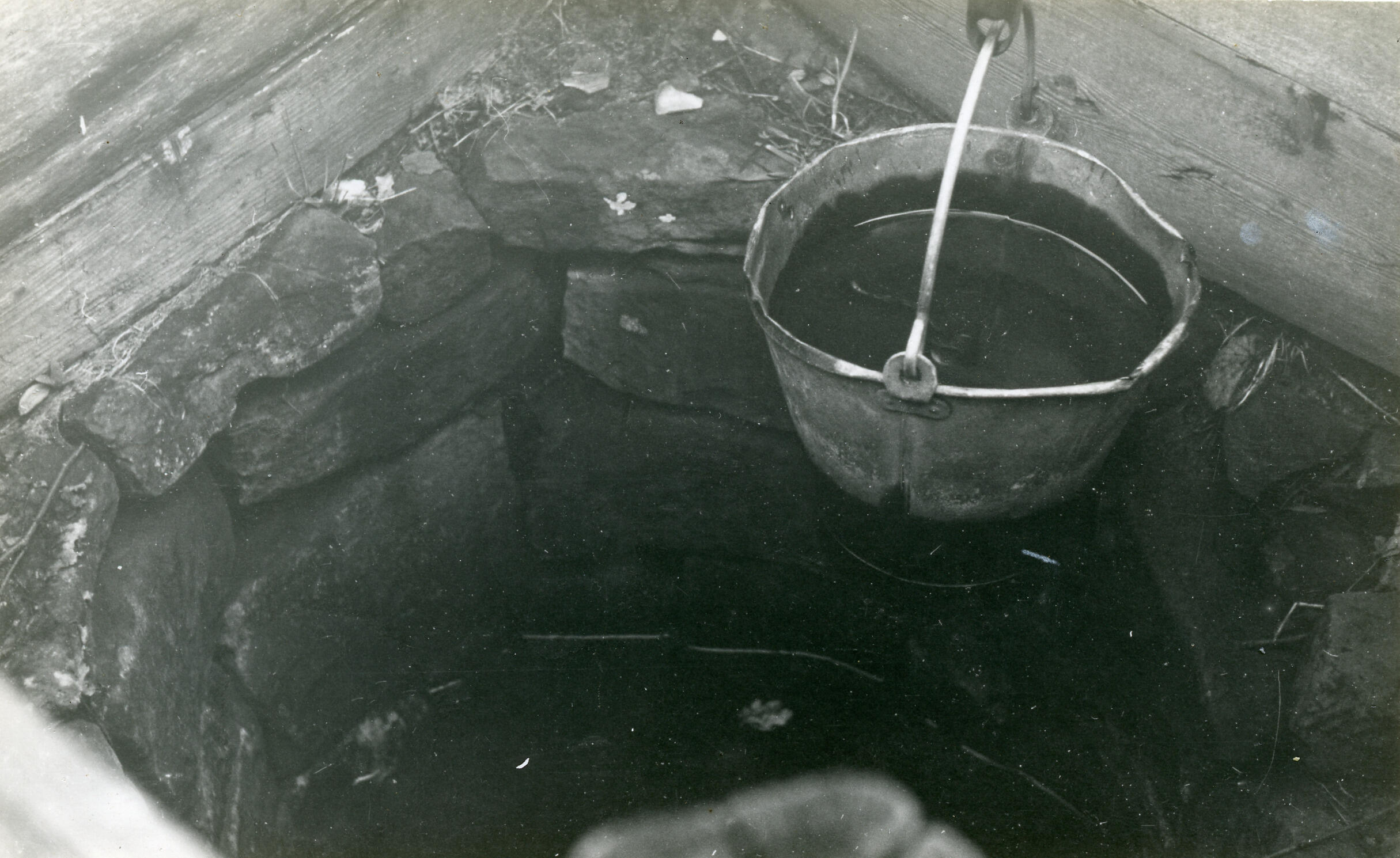 Waterput met een emmer, Berghum, 1940 (zwart-wit foto)