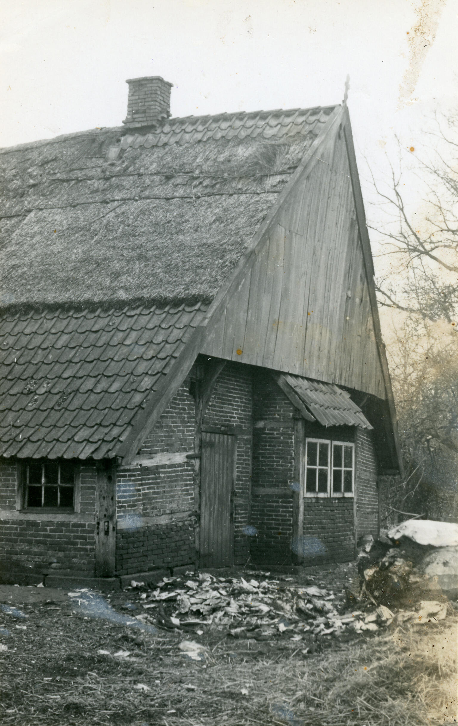 Gedeelte van een hallenhuisboerderij van het type los hoes, met een haarderker, in het Overijsselse Berghum. Een haarderker wordt ook wel een achterheerd of een achteroet genoemd. De muren van de boerderij bestaan uit vakwerkbouw. De voorgevel heeft een houten topgevel met daarboven een gevelteken.