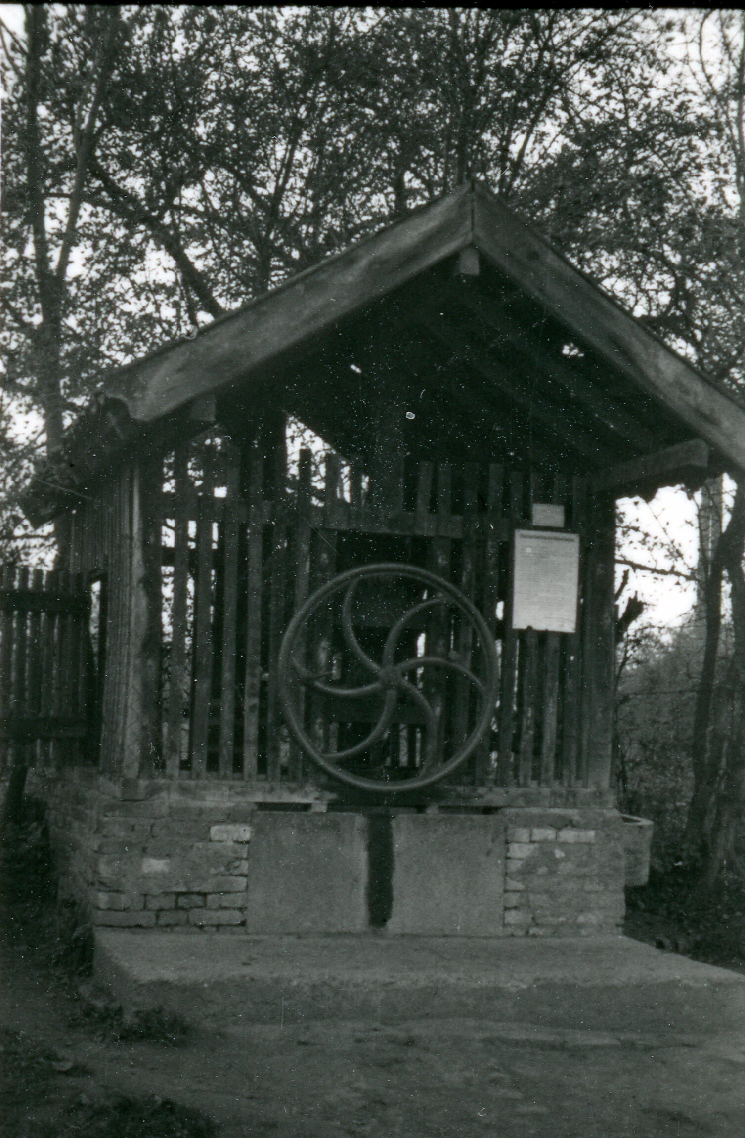 Een puthuis met een draaiwiel om de emmer te bedienen in het Limburgse Sint Geertruid.