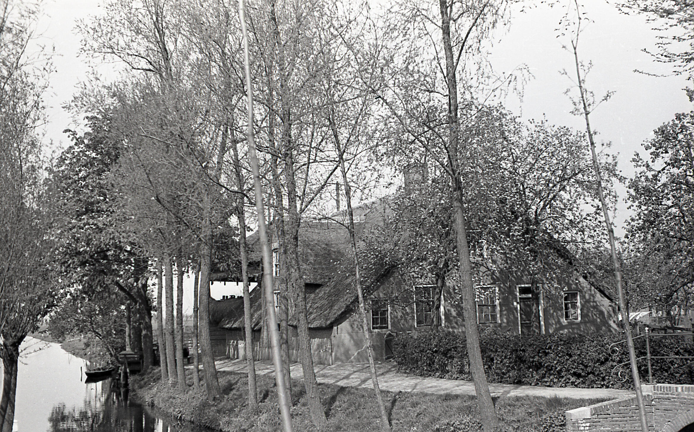 Boerderij aan het water, Lakerveld, 1935 (zwart-wit foto)