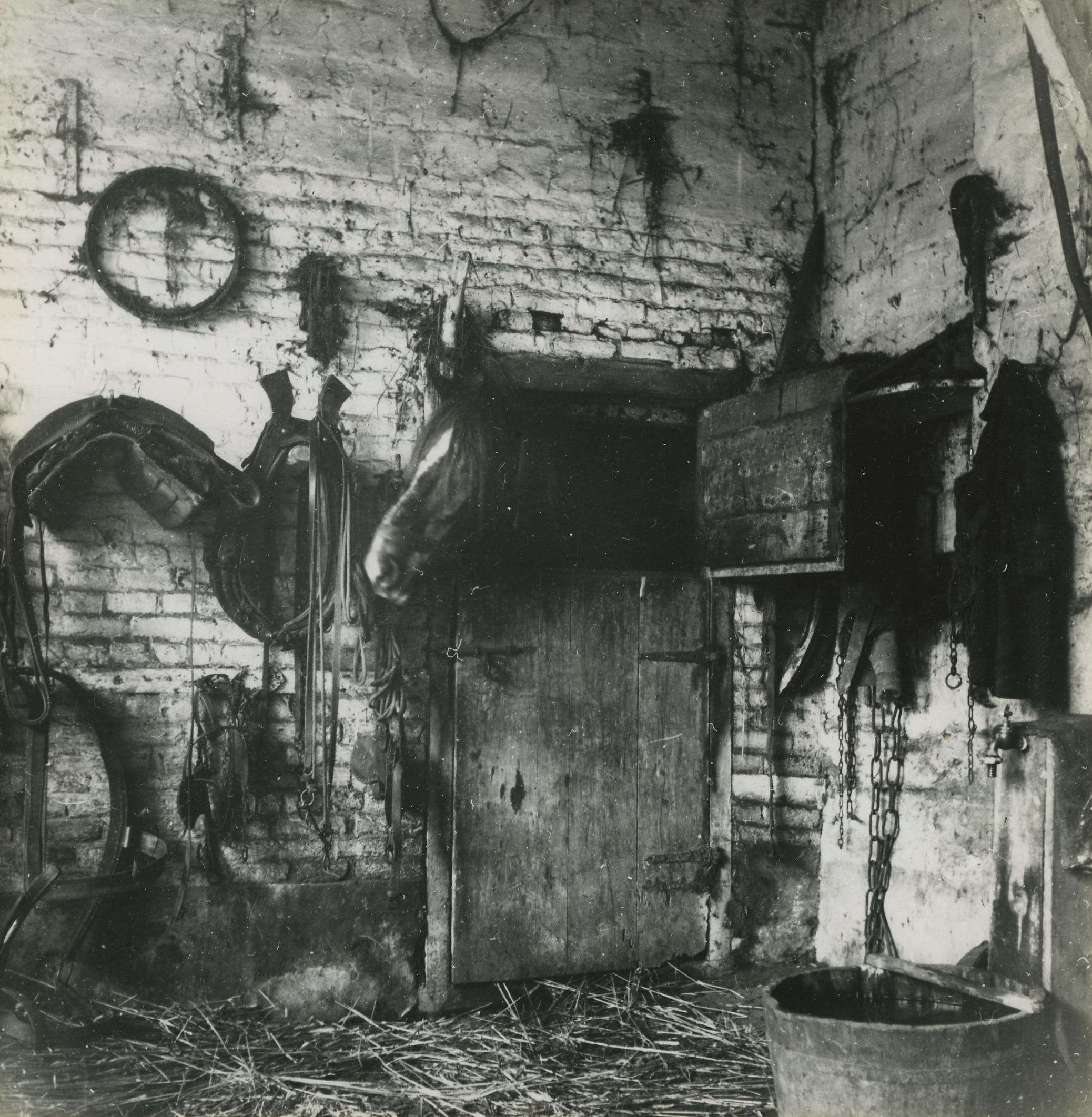 Paardenstal in een boerderij, Schimmert, 1943 (zwart-wit foto)