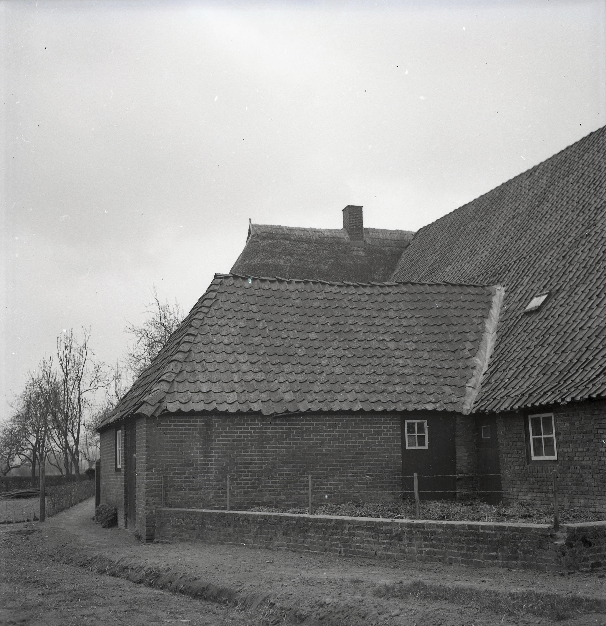 Uitbouw voor rosmolen bij boerderij, Veldhunten, 1943 (zwart-wit negatief)